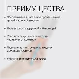 - Конструкция расчёски обеспечивает тщательное прочёсывание густой и плотной шерсти.