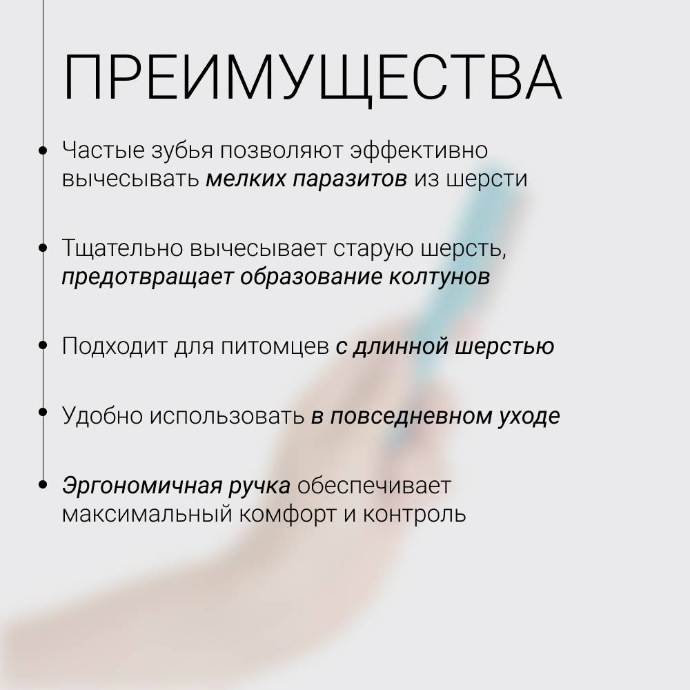 - Тщательно прочесывает шерсть благодаря частым зубьям.