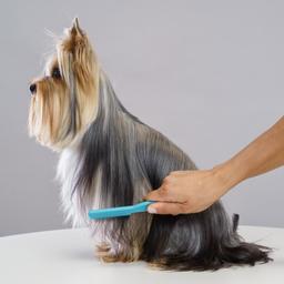 - Вычесывает старую шерсть питомца, предотвращает образование колтунов.