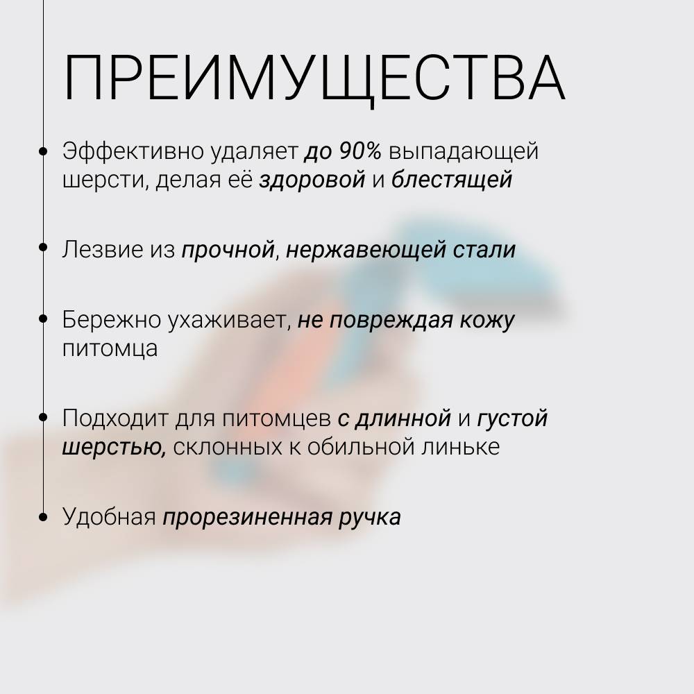 - Эффективно удаляет до 90% выпадающей шерсти.