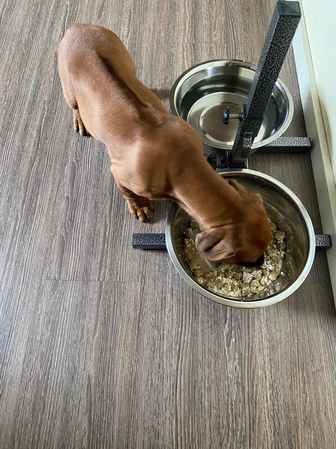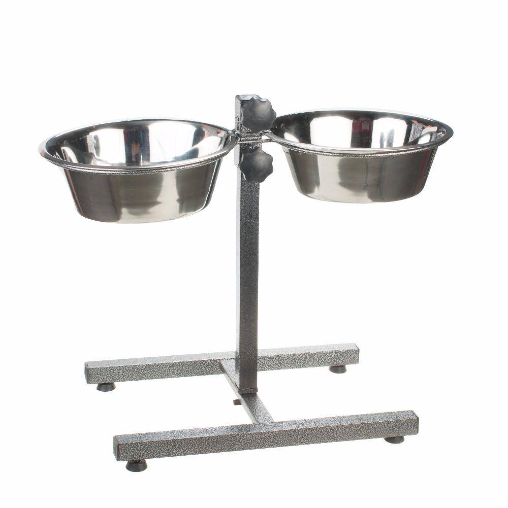 - Комфортная конструкция, позволяет питомцу иметь две одинаковых посудины объемом 2,6 л и высотой 43 см.