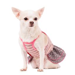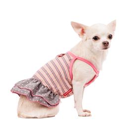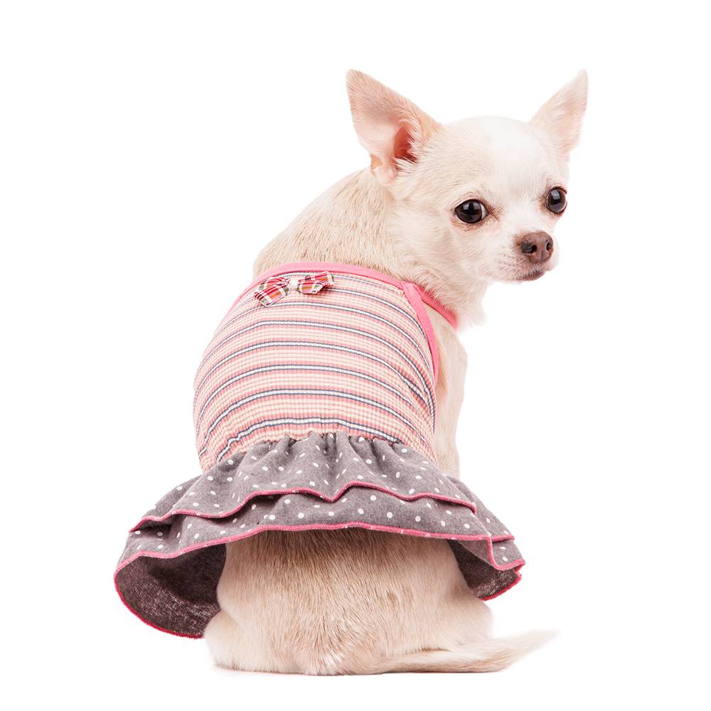 Petmax представляет новую весенне-летнюю коллекцию одежды для собак. Платье розового цвета в полоску и горошек украшено милым бантиком. Подходит для повседневного ношения, праздничных мероприятий и для проведения фотосессий.
