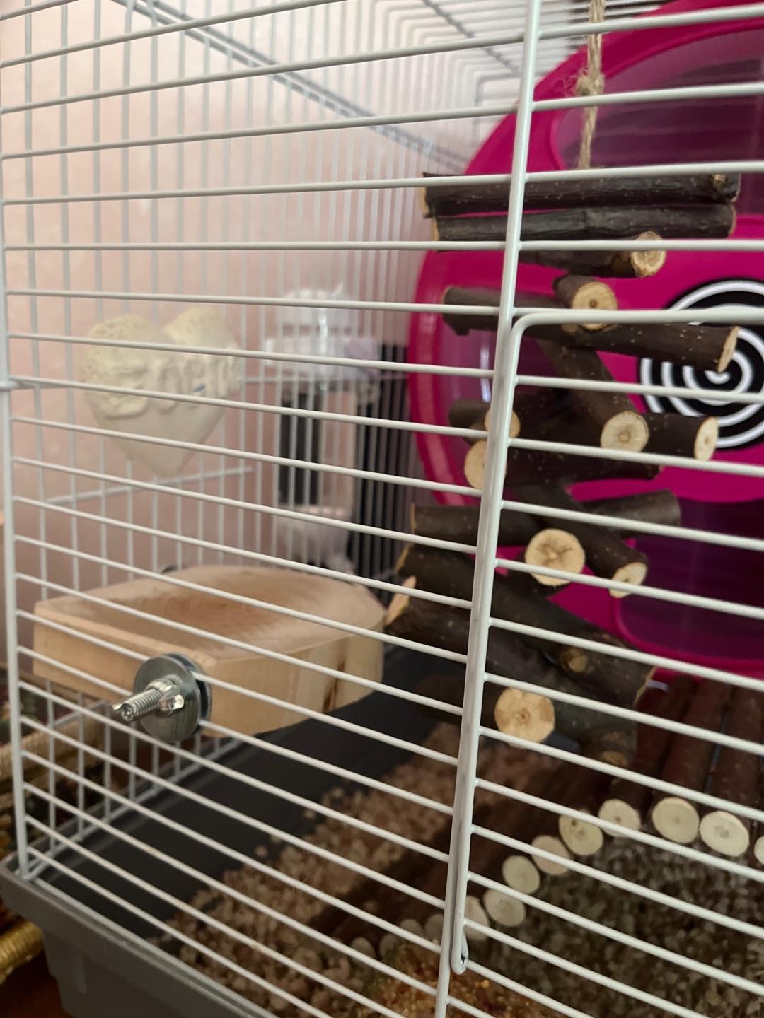 - Легко крепится на прутья клетки, как горизонтальные, так и вертикалые, с помощью двух шайб и барашка.