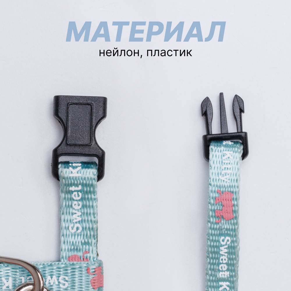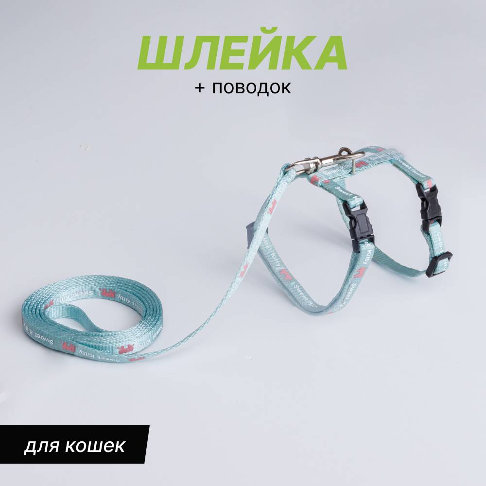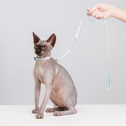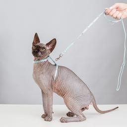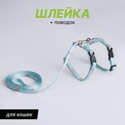 Petmax Шлейка с поводком нейлоновые для кошек, 0,8х32 см, длина поводка 120 см, голубой
