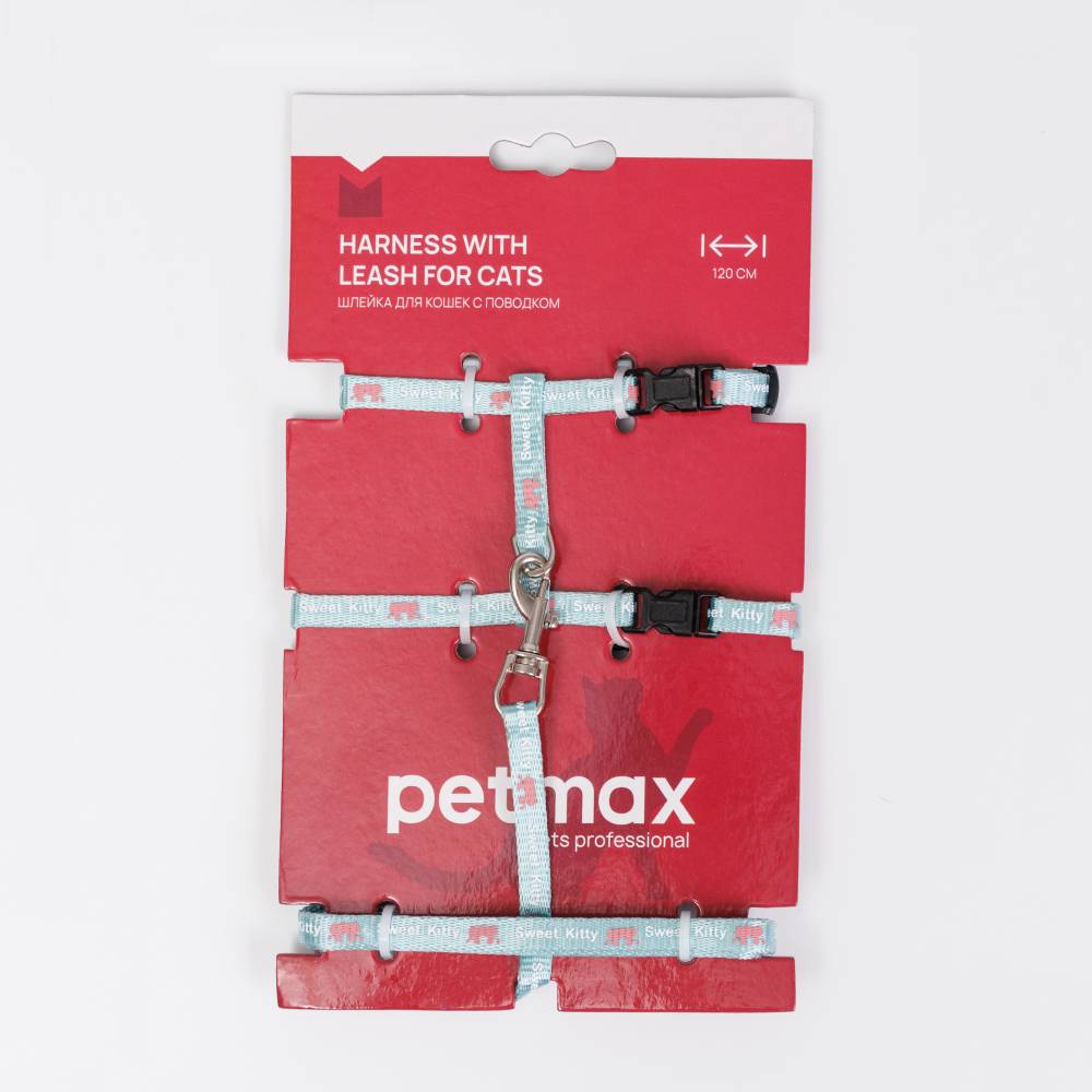 Шлейка для кошек с поводком от бренда Petmax – это надежный аксессуар для безопасности вашего питомца.