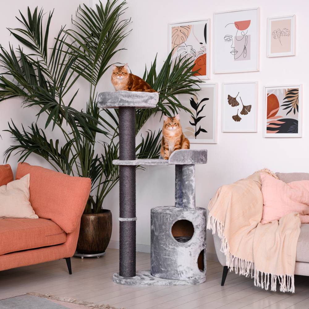 - Несколько уровней когтеточки позволят вашему питомцу активно проводить время, совершая прыжки.