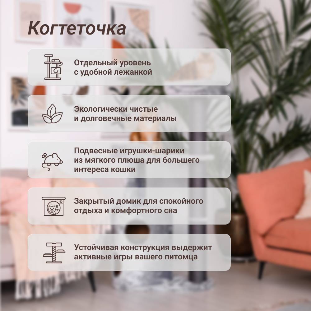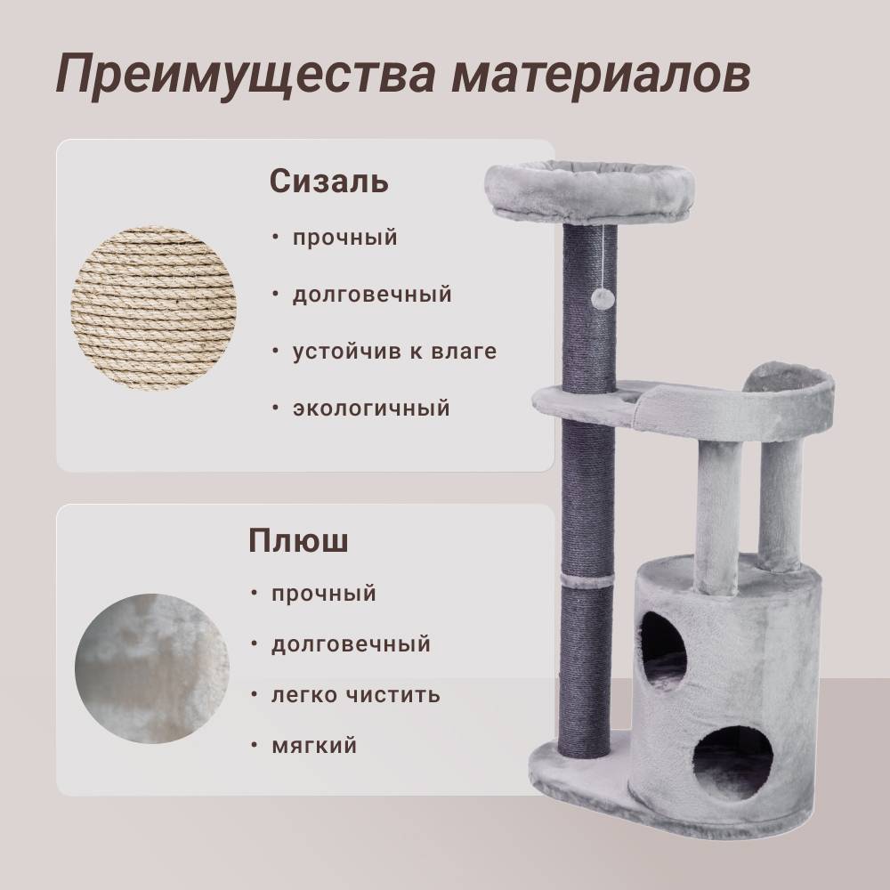 - Несколько уровней когтеточки позволят вашему питомцу активно проводить время, совершая прыжки.