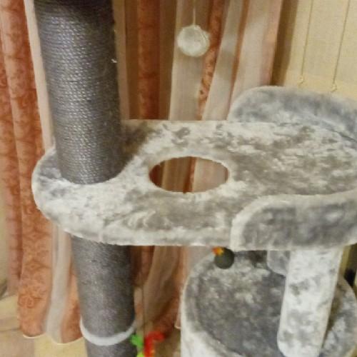 - Столбик комплекса служит когтеточкой, он обмотан верёвкой из сизалевого волокна - прочным материалом, который идеально подходит для