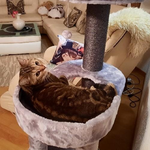 - Уютный лежак с бортиком на столбике, где ваш питомец сможет отдохнуть.
