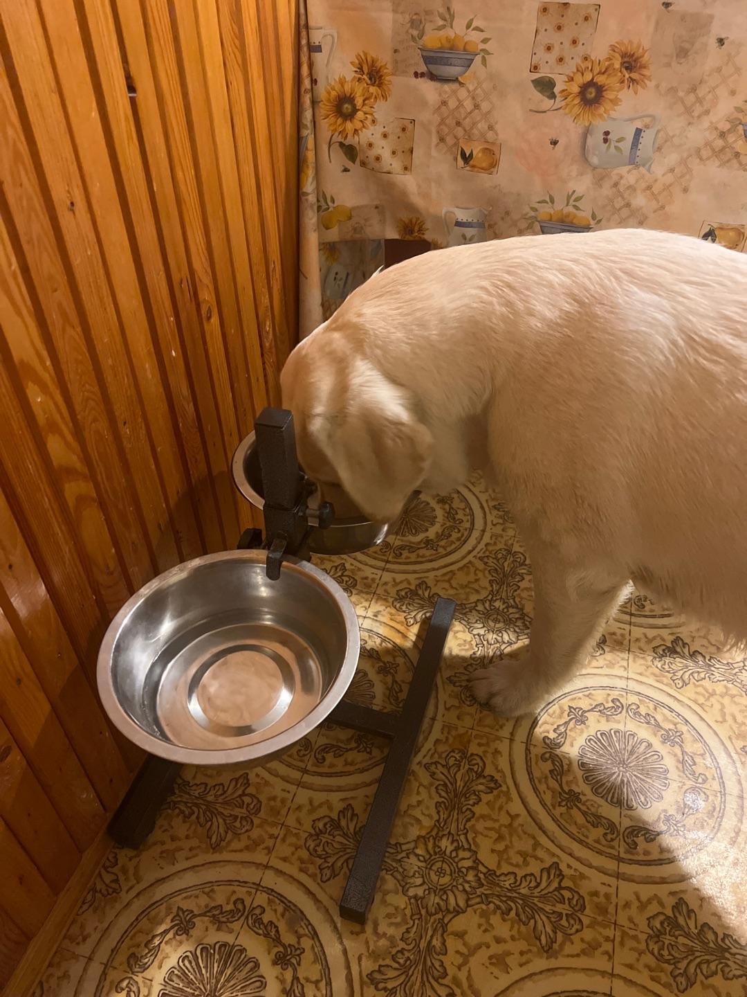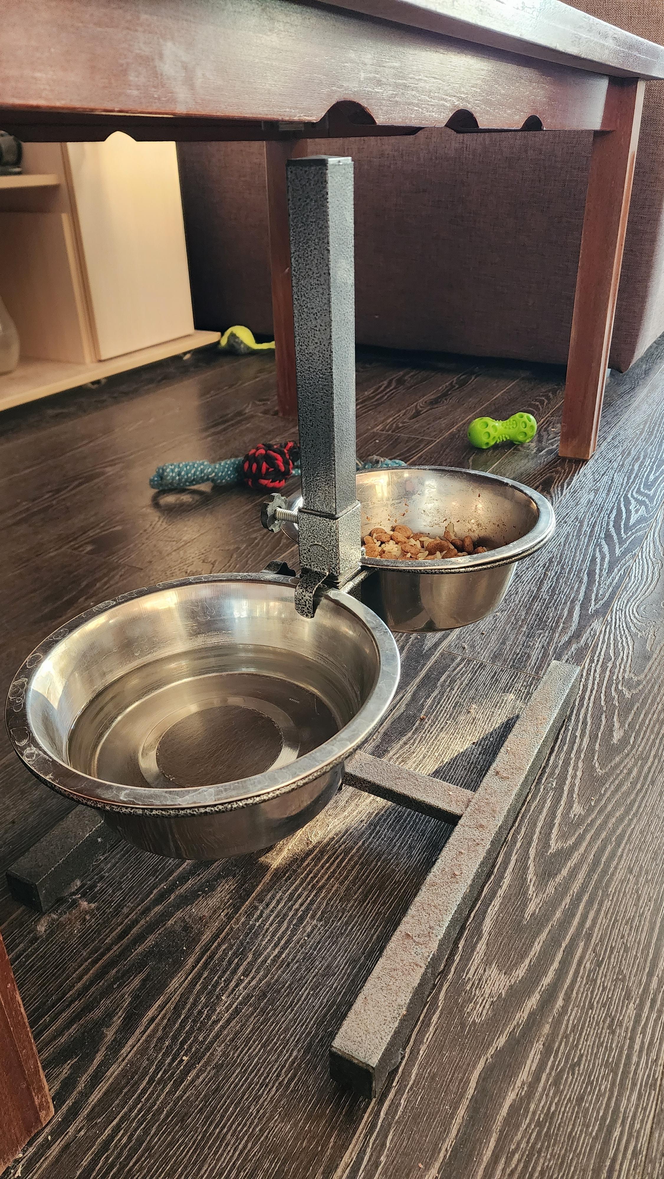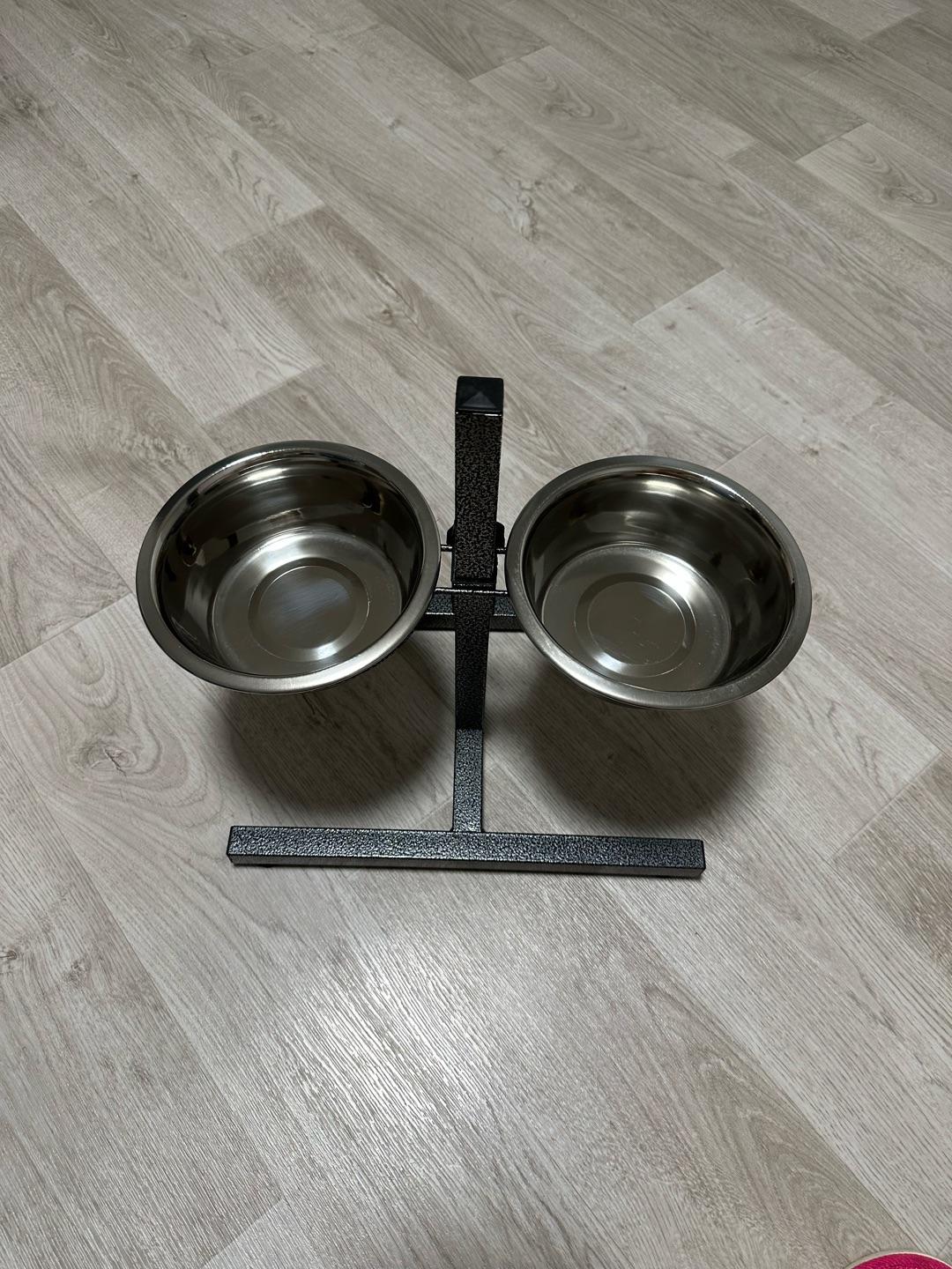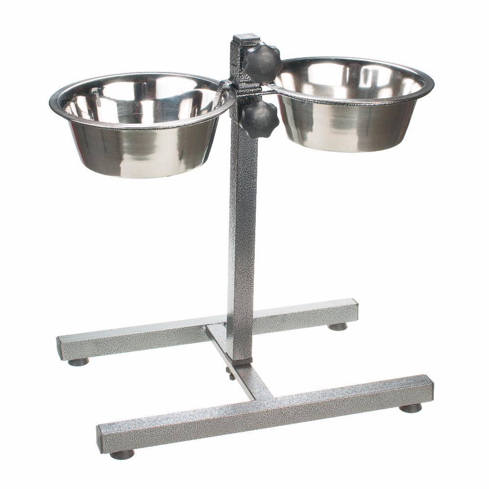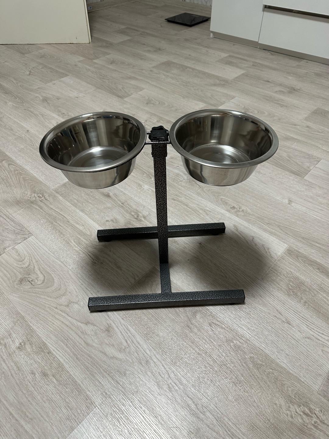 - Комфортная конструкция, позволяет питомцу иметь две одинаковых посудины объемом 2,6 л и высотой 43 см.
