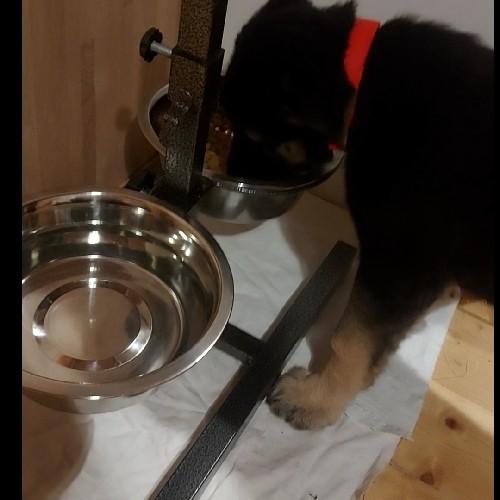 - В одну рекомендуется насыпать сухой или влажный корм, лакомство, консервы, а вторую наполнить чистой водой.