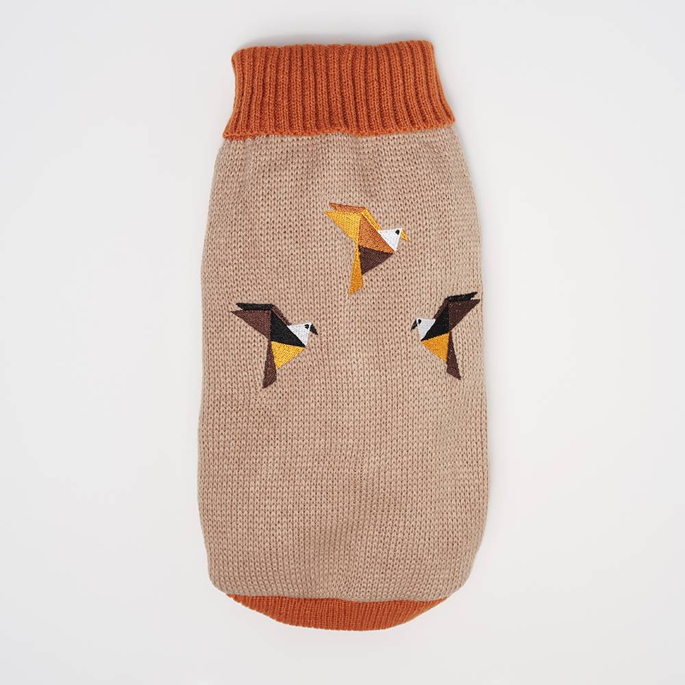Petmax Свитер с птичками для кошек и собак, S, бежевый