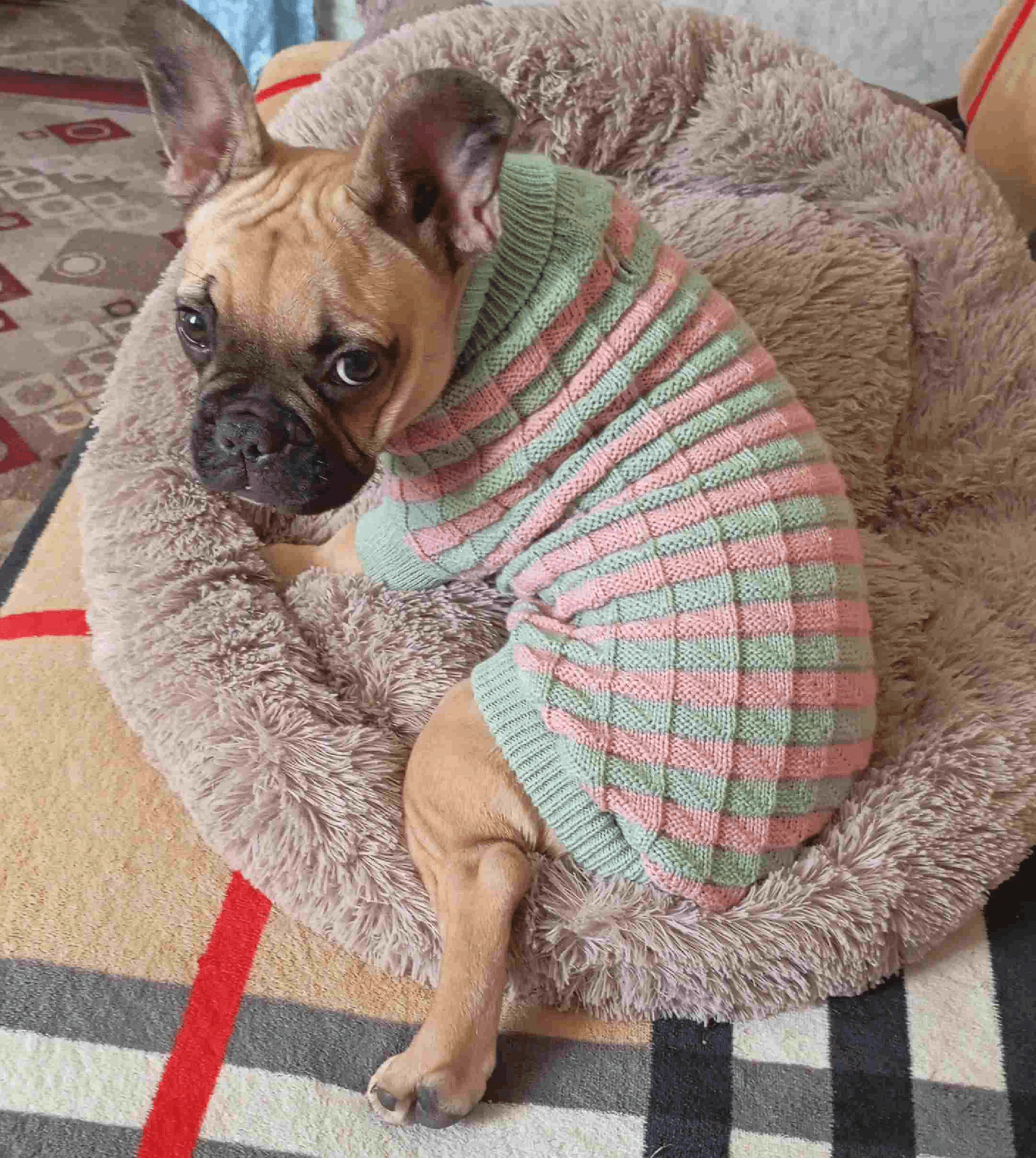 Стильный и теплый свитер защитит четвероногого друга от холода, рассчитан на осеннюю погоду или ношение в прохладных помещениях.