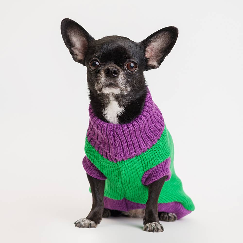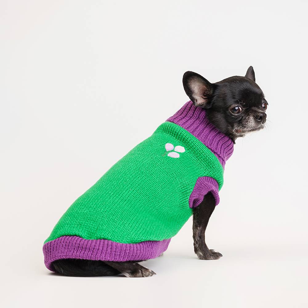 Стильный и теплый свитер защитит четвероногого друга от холода, рассчитан на осеннюю погоду или ношение в прохладных помещениях.