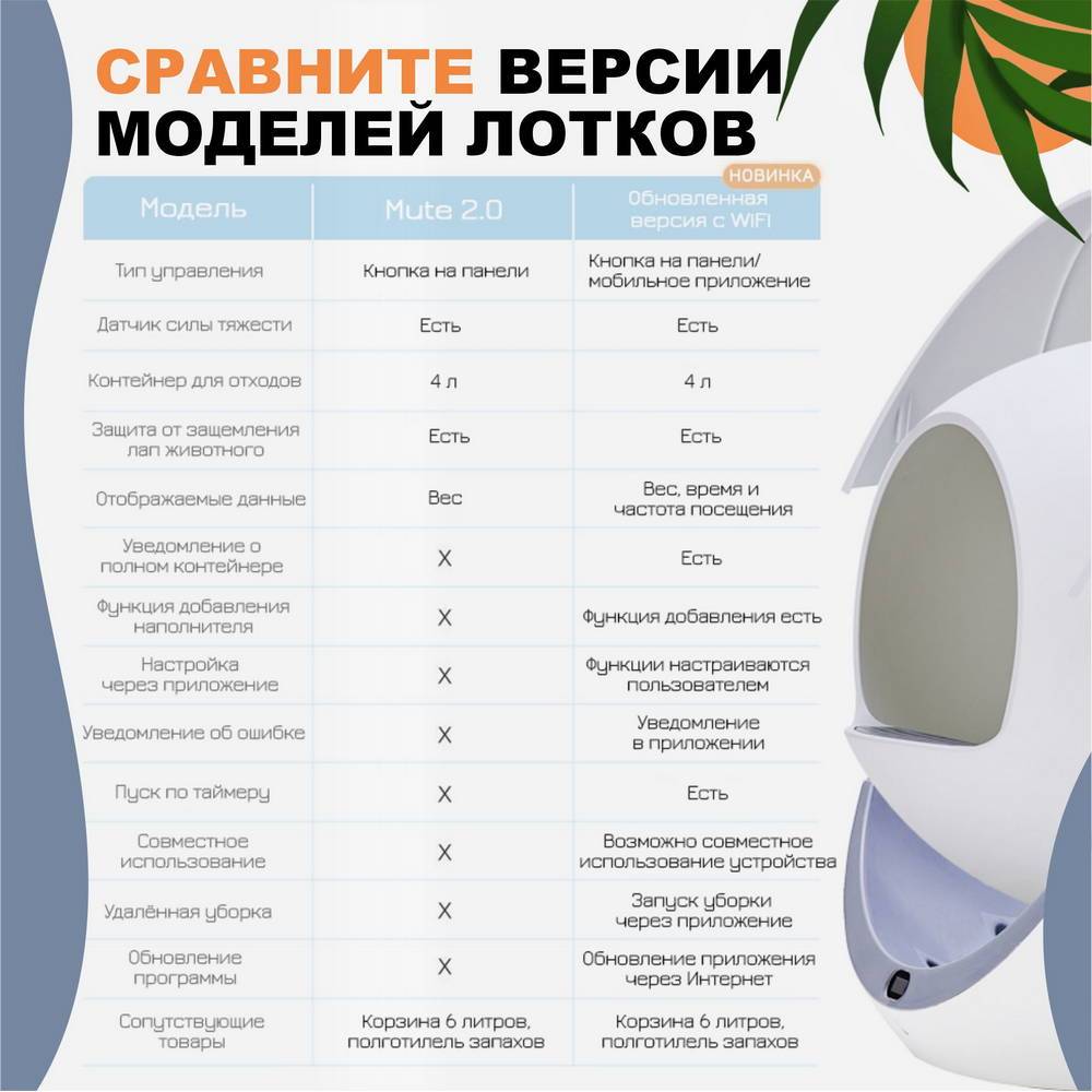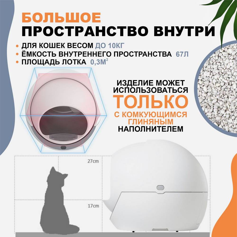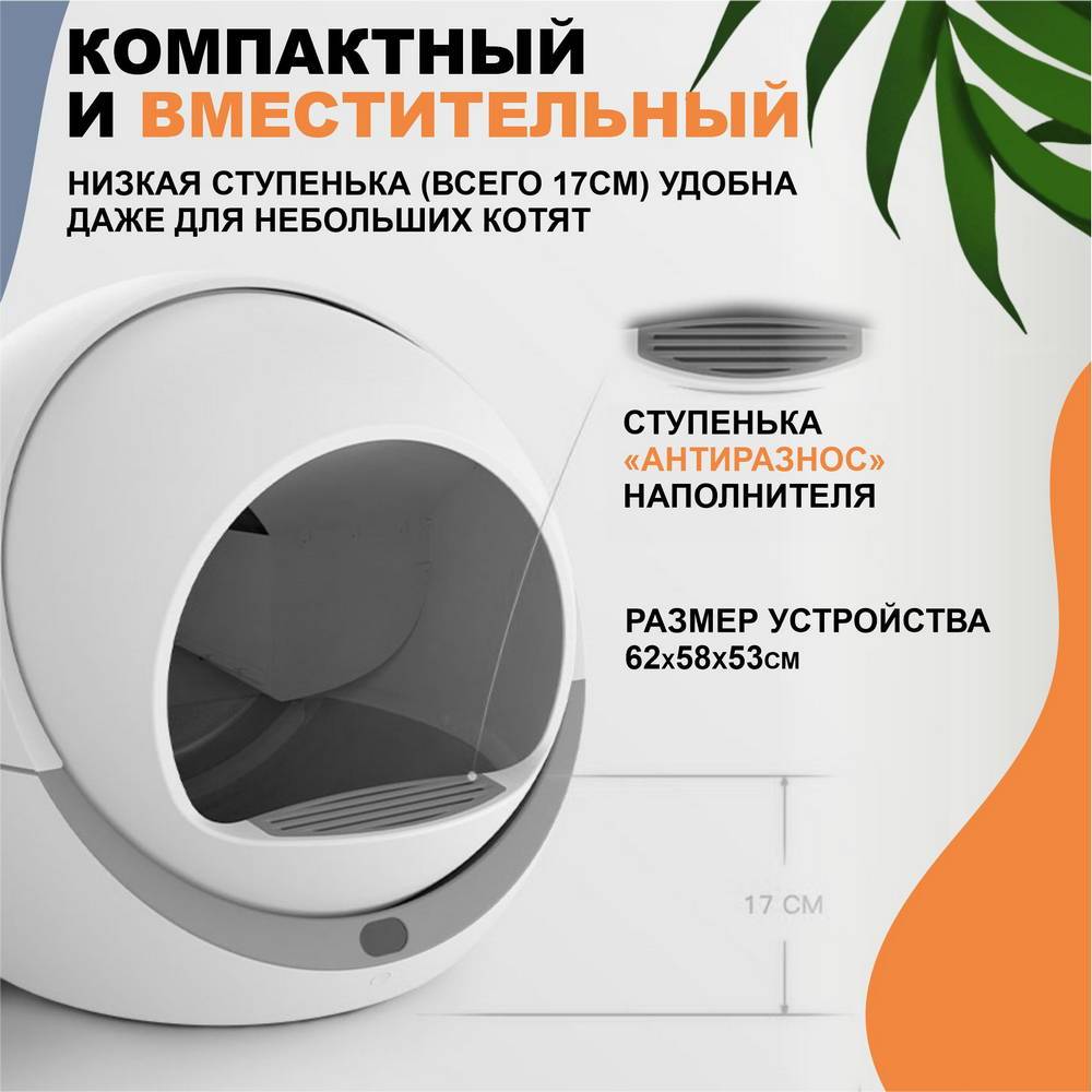 Главная функция туалета – самостоятельная очистка, позволяет освободить свои будни от ежедневной, рутинной и не очень приятной уборки кошачьего лотка.