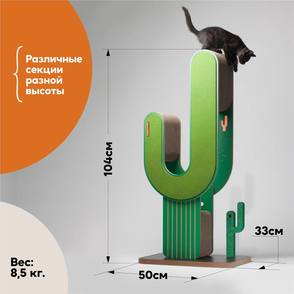 Когтеточка Petree подходит для питомцев разного размера, возраста и роста. Есть высокие и низкие места, что подойдёт для питомцев с короткими лапами. Кот, кошка или котёнок будет лазать, точить когти и играть. Округлые безопасные элементы с просчитанным утяжелением конструкции делают когтеточку надёжной даже для самых больших котов и кошек.