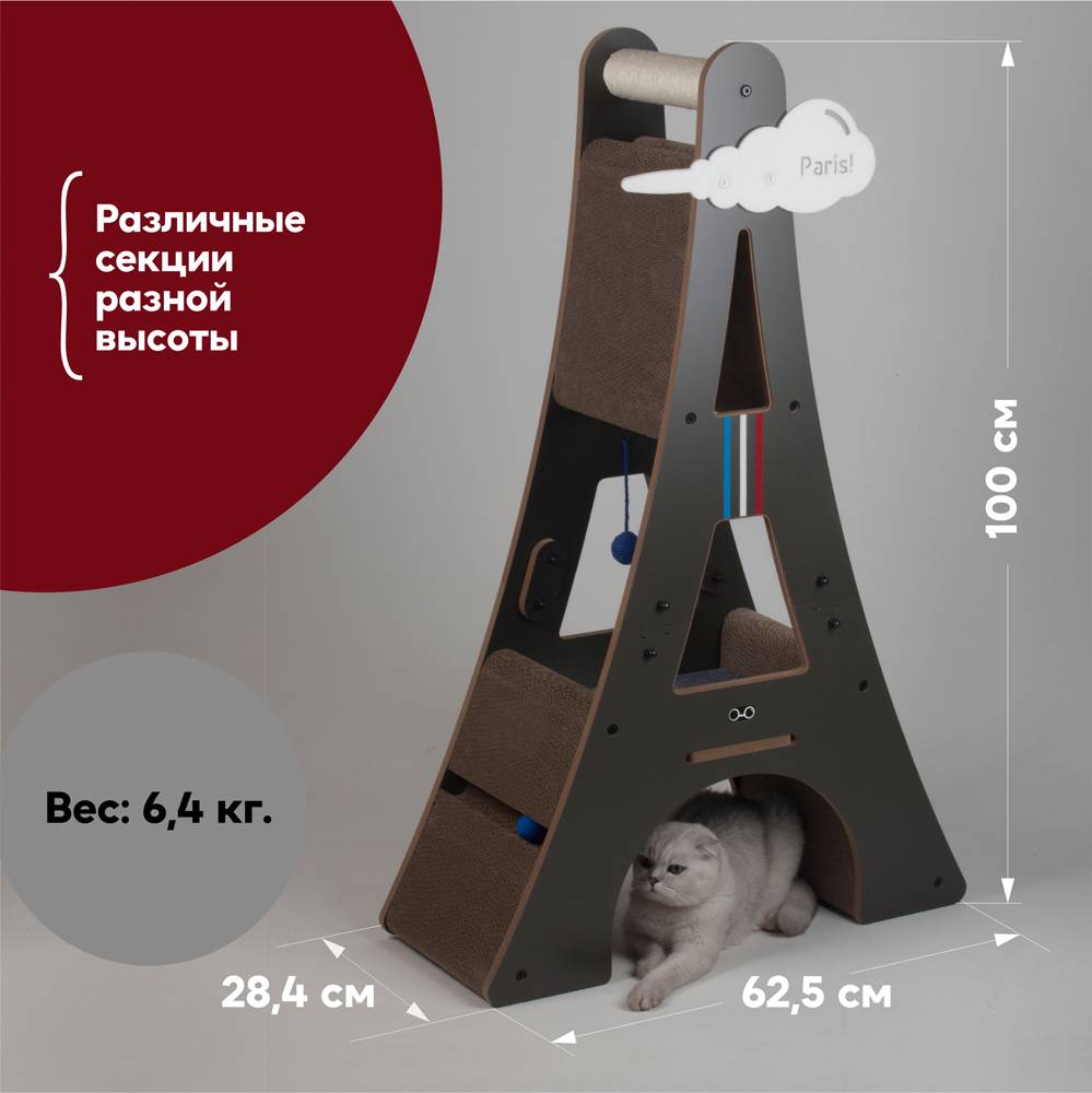 - Наконец-то у котиков есть возможность путешествовать по разным странам и получить свой кусочек Франции. Кроме того, башня не только украсит интерьер вашей квартиры, но и вызовет зависть у знакомых кошатников.