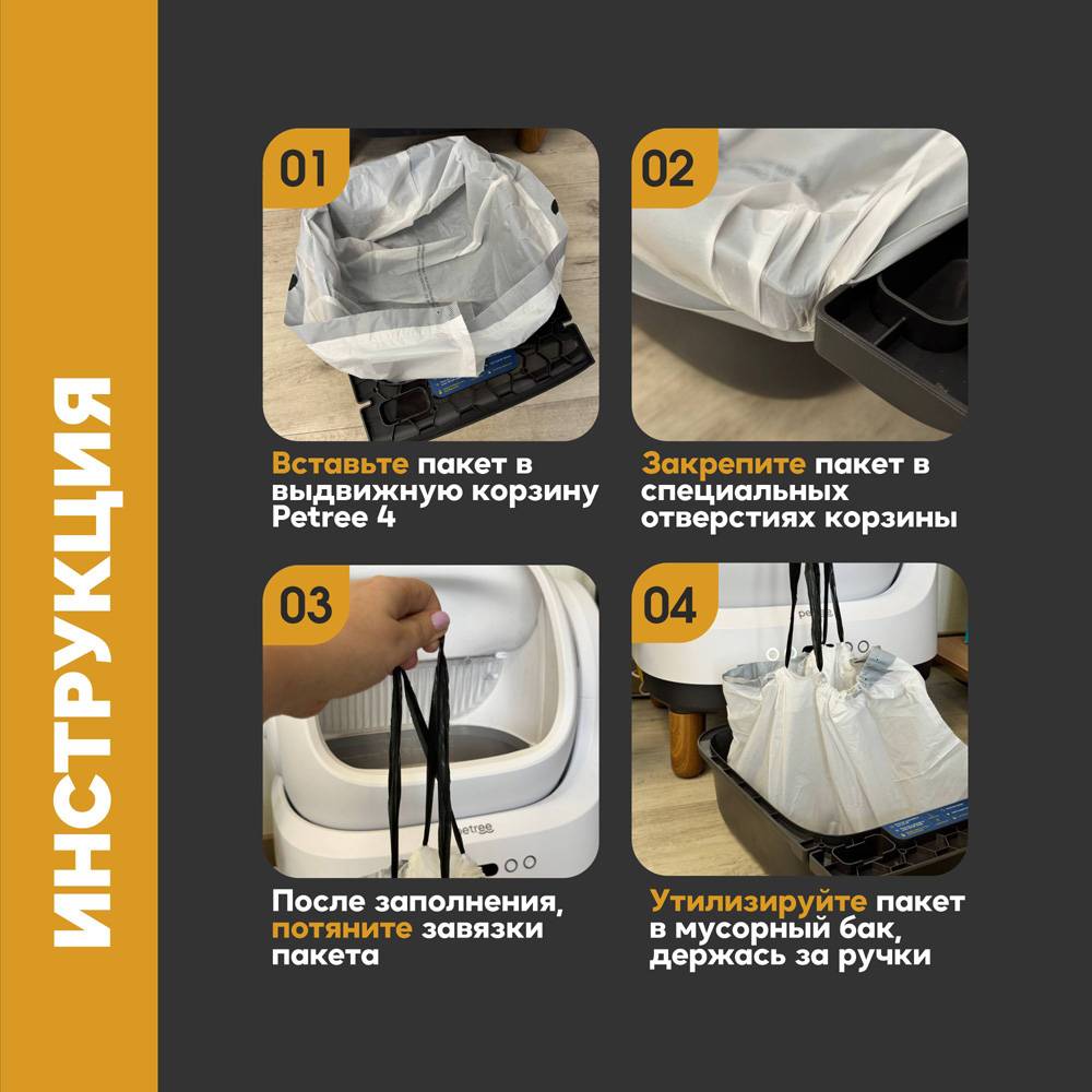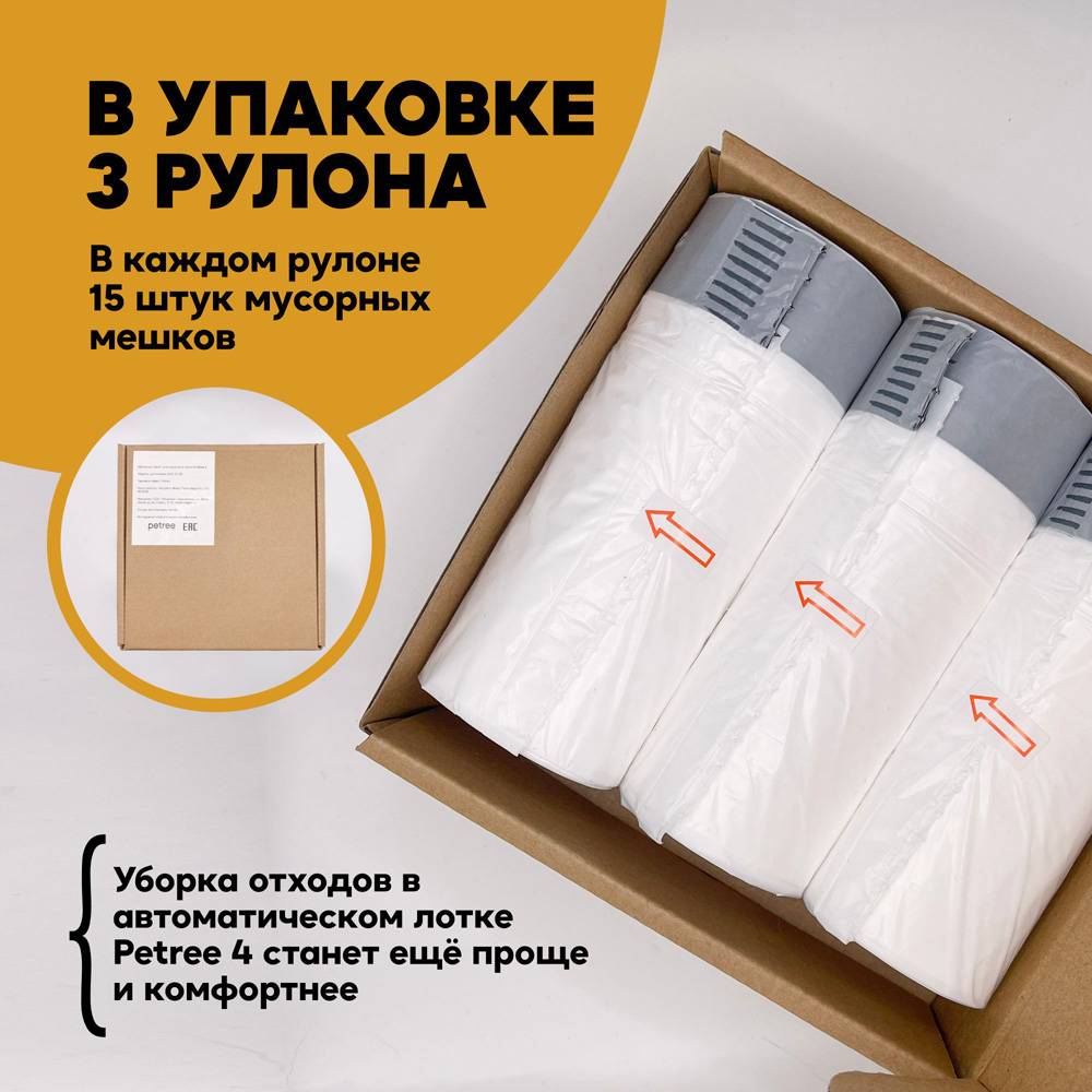 Сменные пакеты для мусора Petree, предназначены для мусорной корзины автоматического туалета Petree 4 поколения.