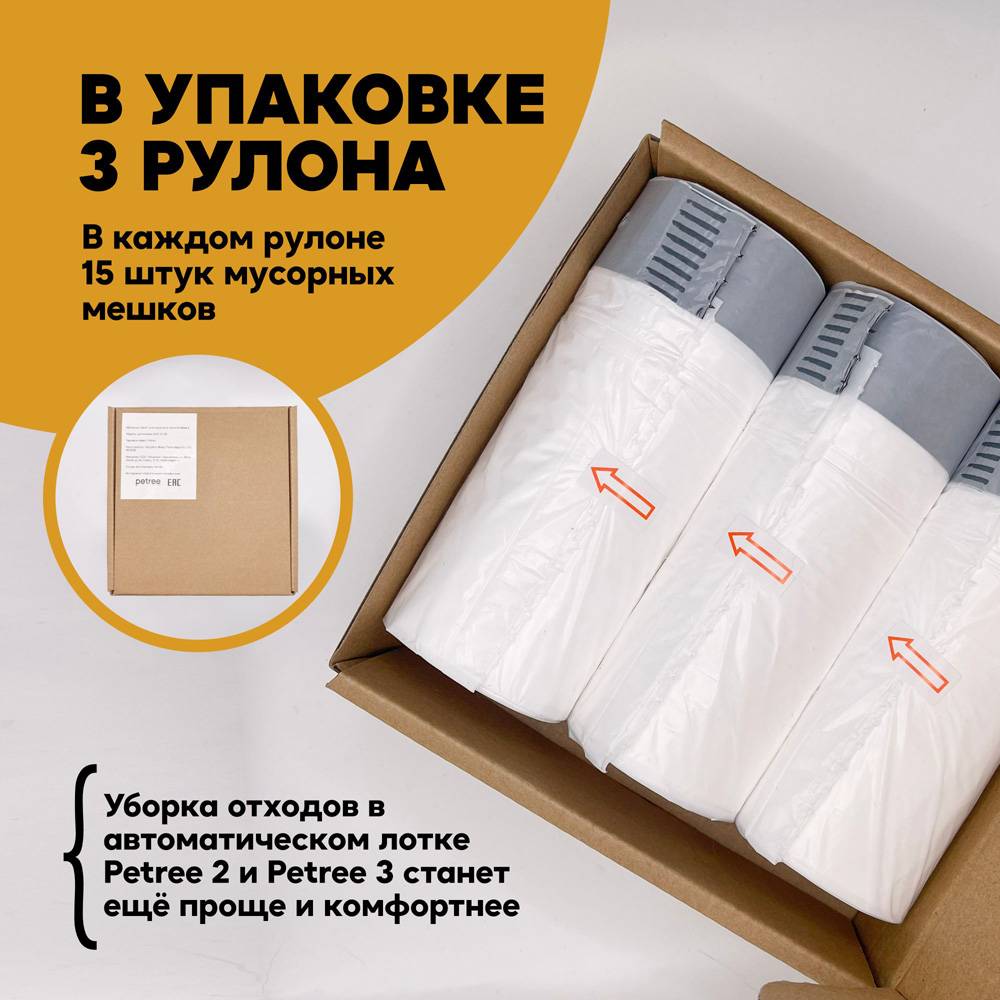 Мусорные пакеты для автоматического туалета Petree 2 и Petree 3 — идеальное решение для поддержания чистоты и гигиены в вашем доме. Этот набор из 45 пакетов разработан с учетом всех потребностей владельцев домашних животных, чтобы облегчить уход за ними и поддержание чистоты в доме.