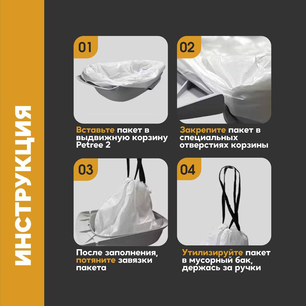 - Благодаря своей удобной конструкции мешки легко установить в автоматический лоток Petree 2 и Petree 3, что экономит ваше время и усилия.