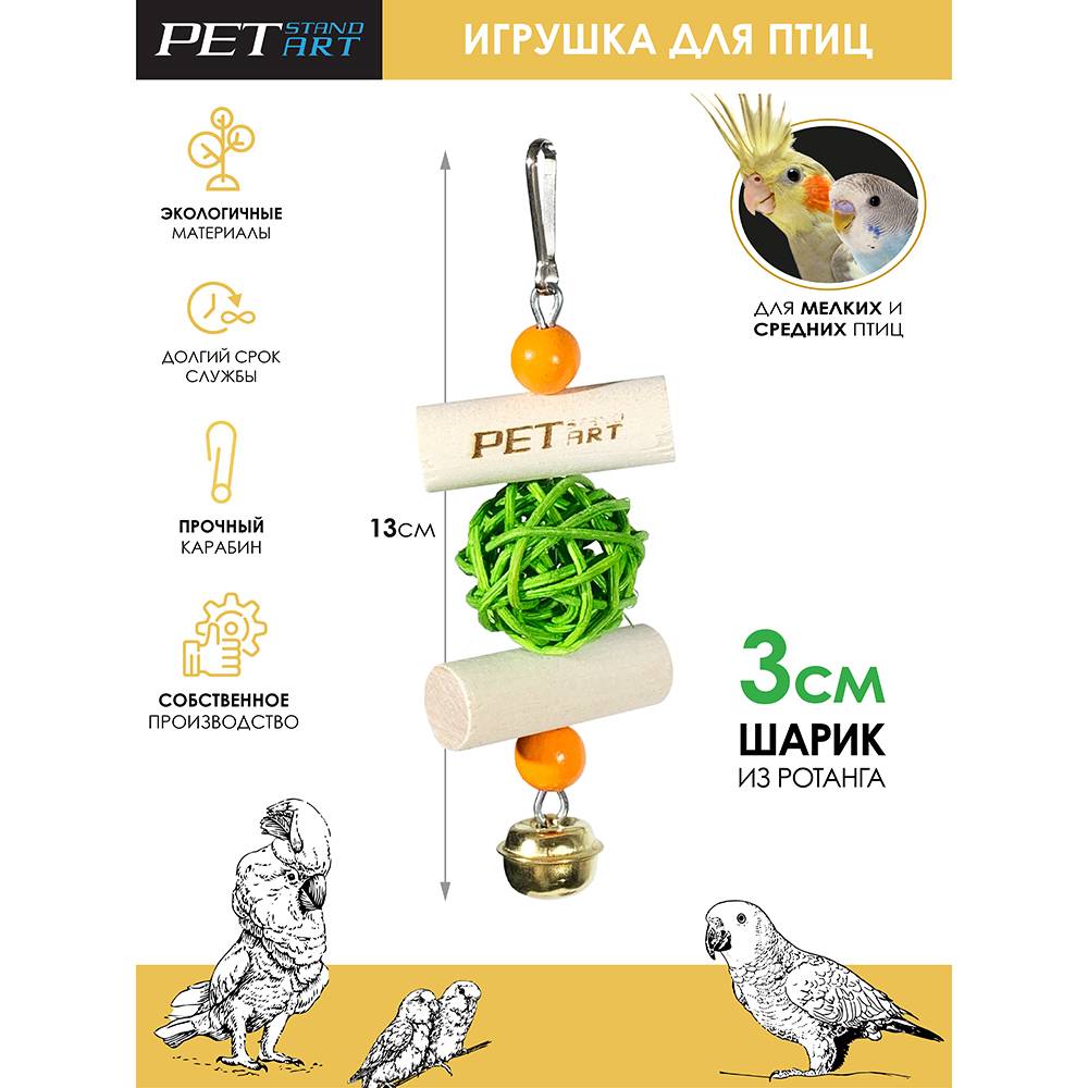PetStandArt Игрушка для попугаев Rattan Ball, 12х2x4 см