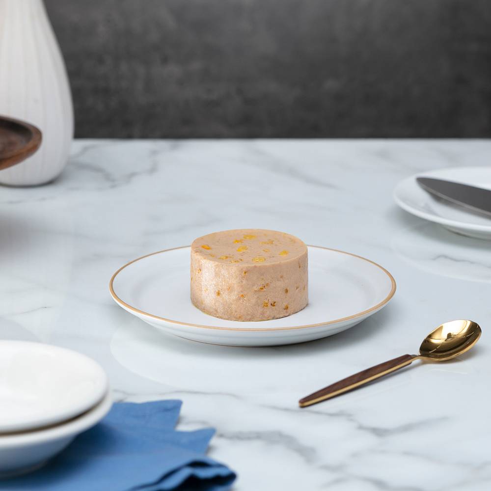 Полнорационный бархатный мусс из куриного филе с тыквой для взрослых кошек.