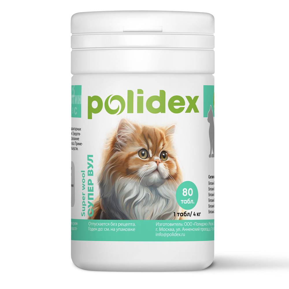 «СУПЕР ВУЛ» предназначен для профилактики возникновения ломкости и хрупкости шерсти, колтунов, сухости кожи и появления перхоти. Обеспечивает яркую пигментацию шерсти, не вызывает потемнения цвета шерсти у кошек со светлым окрасом, не дает бурого оттенка у кошек черного окраса. Применение у голых пород кошек улучшает состояние кожи без роста шерсти.