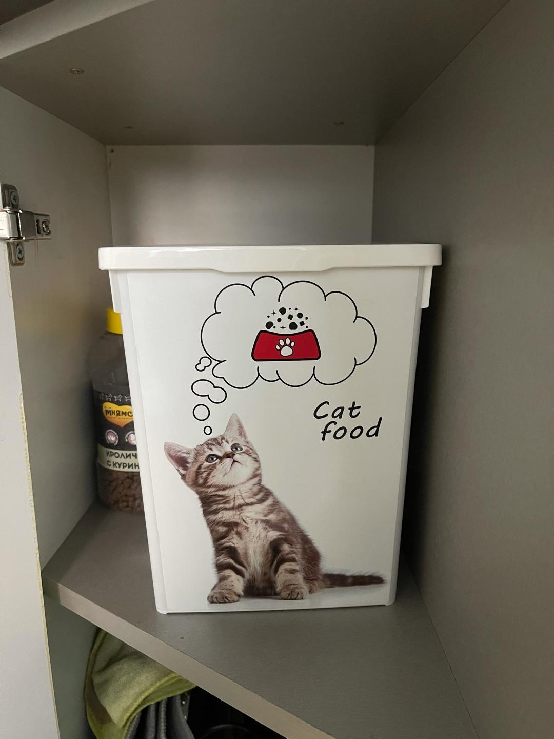- Контейнер, изготовленный из высококачественного пластика, предназначен для хранения корма для животных.