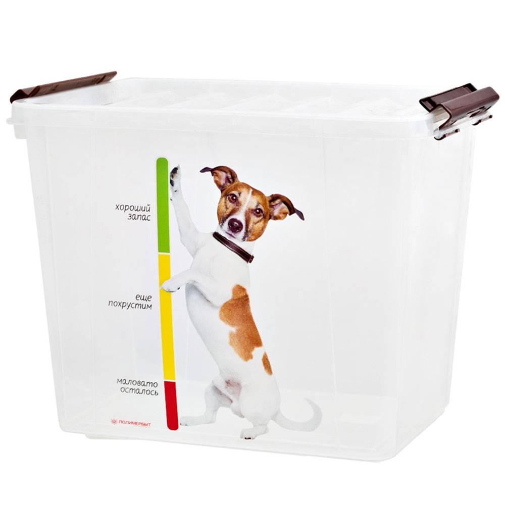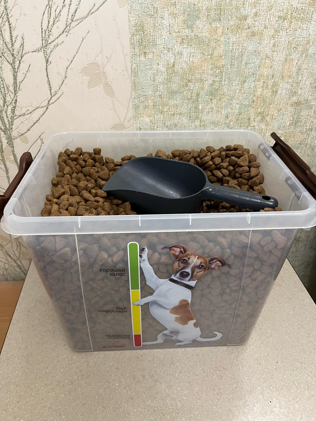 - Надежные защелки на крышке обеспечат сохранность корма.