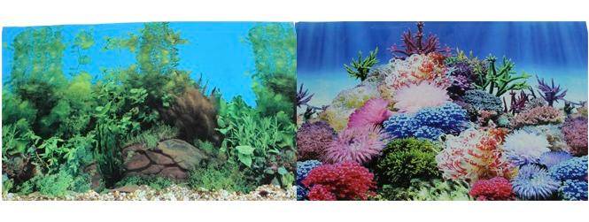 Фон для аквариума двухсторонний Коралловый рай/Подводный пейзаж 50х100 см - декоративная пленка, которая предназначена для крепления к задней стенке аквариума. При помощи фона можно сделать дизайн аквариума более интересным и объемным, при этом не понадобится тратить значительные средства. Благодаря двухстороннему фону можно менять фон, оживляя интерьер аквариума.