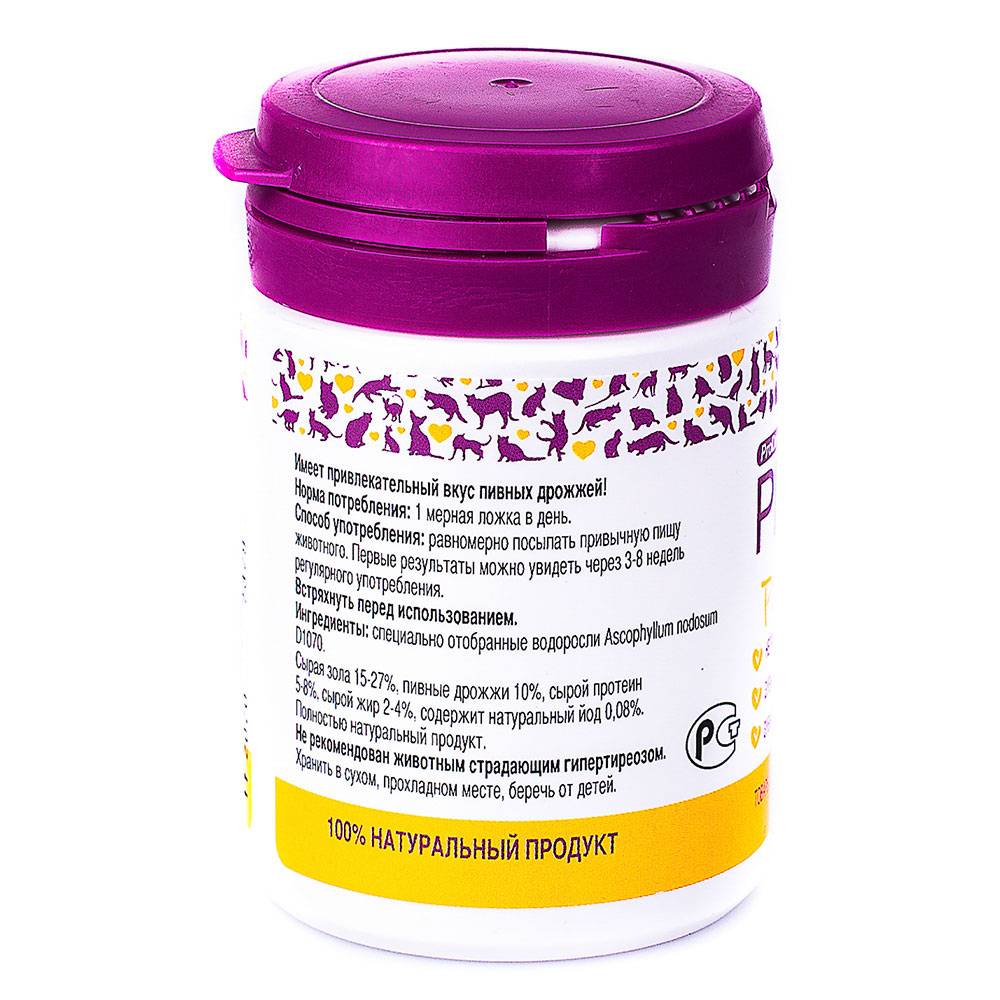 Прост в использовании; выпускается в виде порошка, который легко добавлять в корм животного. В каждой баночке имеется мерная ложка.
