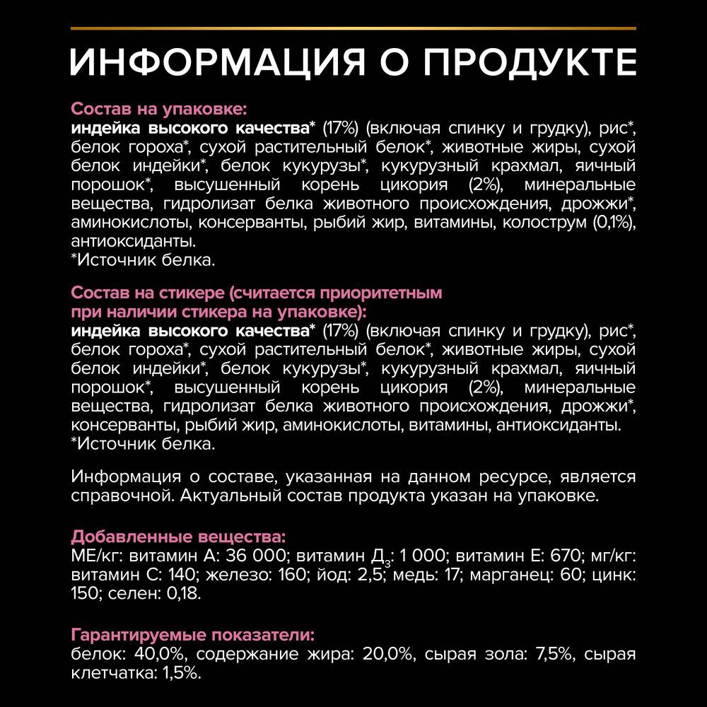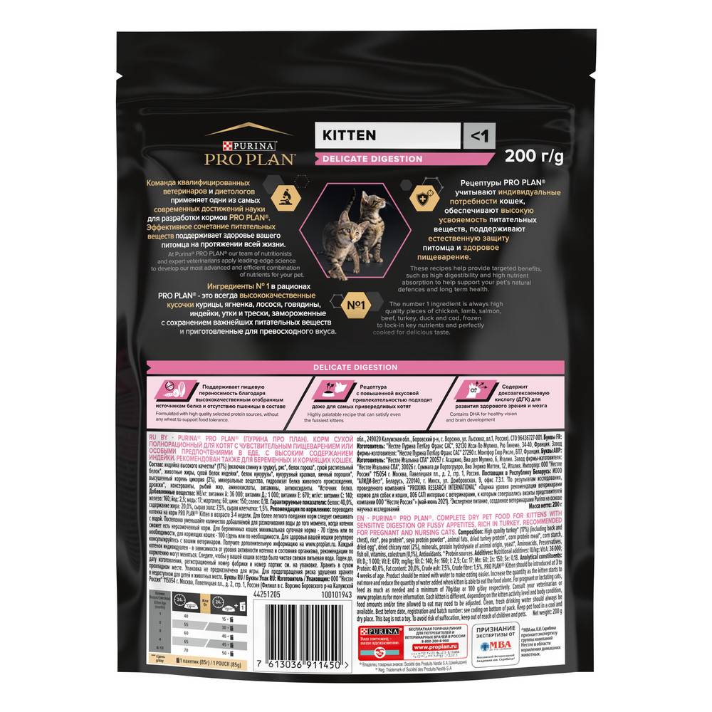 Команда квалифицированных ветеринарных специалистов и диетологов разработала сухой корм с индейкой для котят PRO PLAN® DELICATE DIGESTION. Это сбалансированный полнорационный корм для котят с оптимально подобранным составом и легкоусвояемой формулой. Он обеспечивает организм полезными веществами, необходимыми для нормального роста и полноценного развития котят.