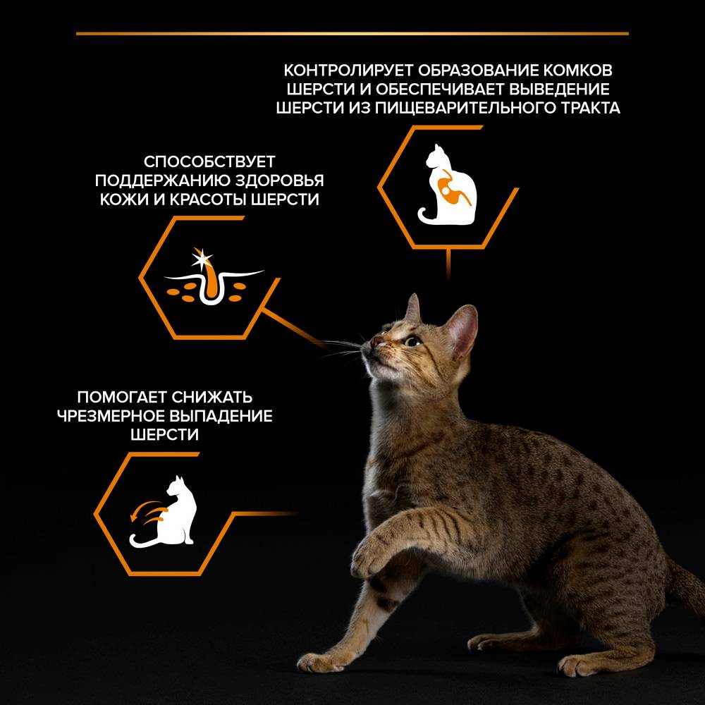 - Контролирует образование комков шерсти, безопасно и мягко выводит шерсть из пищеварительного тракта.