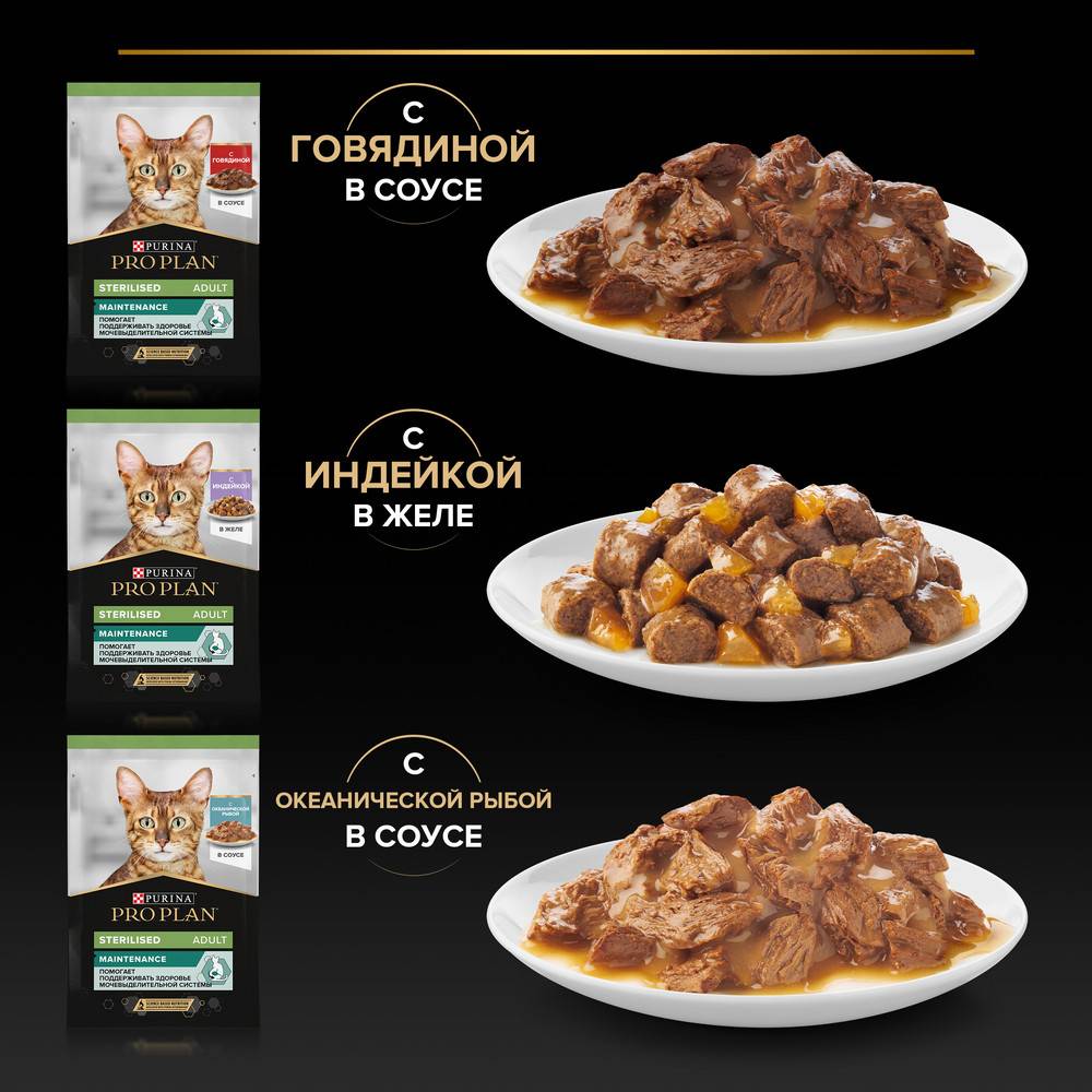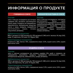 - Разнообразие вкусов и текстур: кусочки в соусе, паштет или нежное желе со вкусом говядины, курицы, индейки, утки или рыбы.