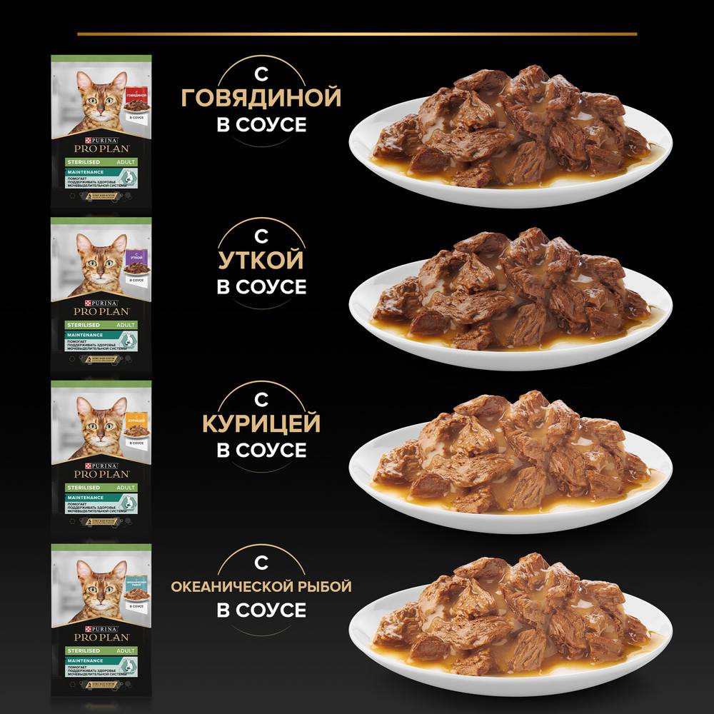 Стерилизация способствует увеличению продолжительности жизни и снижает риски возникновения многих заболеваний. Однако стерилизованные кошки имеют свои особенности. После стерилизации кошка становится менее активной, в результате чего повышается склонность к набору веса и развитию мочекаменной болезни. Эксперты PRO PLAN разработали влажный корм для стерилизованных кошек с учетом особых потребностей Вашего питомца.