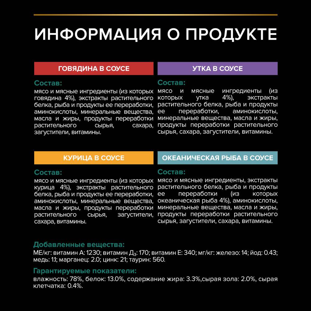 - Упаковка мультивкус: комбинация паучей со вкусом говядины, курицы, утки и океанической рыбы