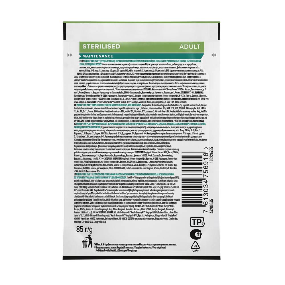 Команда квалифицированных ветеринарных специалистов разработала влажный корм PURINA® PRO PLAN®STERILISED MAINTENANCE для взрослых стерилизованных кошек. Этот полнорационный корм для кошек с говядиной разработан с учетом их потребностей в высококачественном белке, подходит для ежедневного кормления,