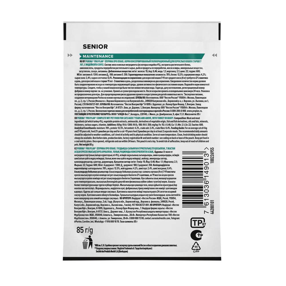 Команда квалифицированных ветеринарных специалистов разработала влажный корм PURINA® PRO PLAN® MAINTENANCE для взрослых кошек старше 7 лет. Этот полнорационный корм для кошек с индейкой обогащен специальным комплексом нутриентов для поддержания основных функций организма питомцев старшего возраста.