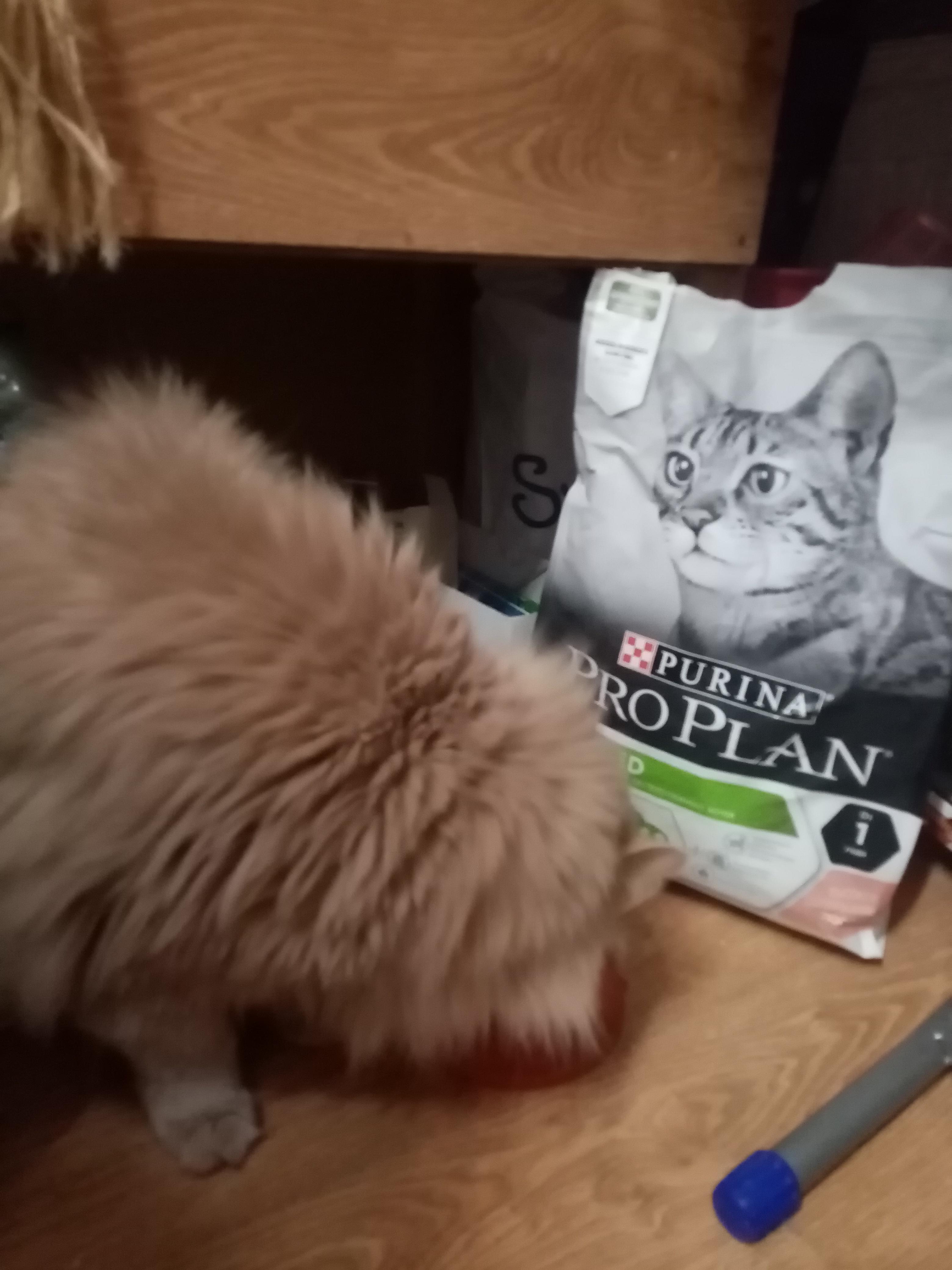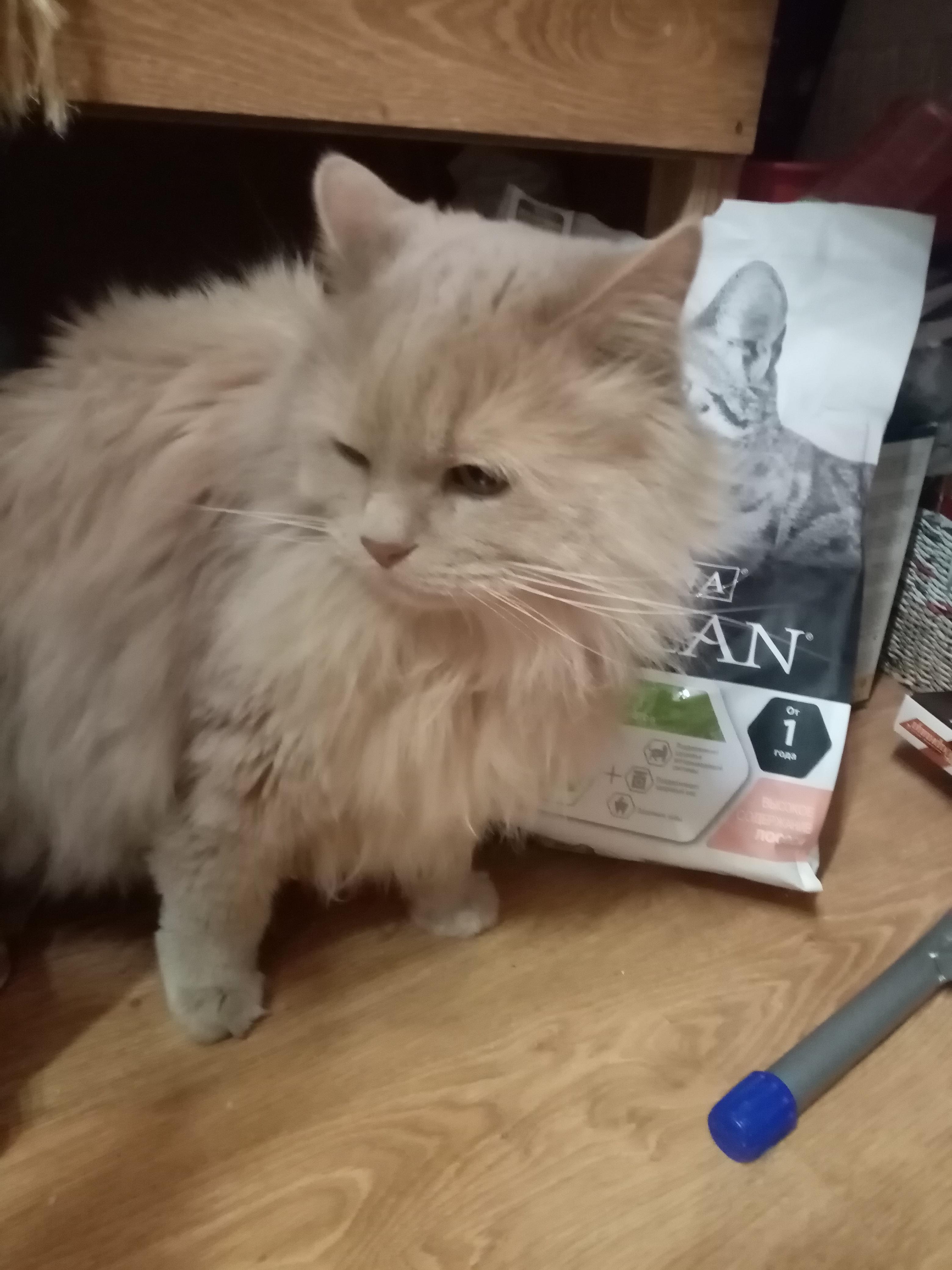Кот доволен и сыт, любит именно с лососем, он длинношёрстный, проблем с выходом шерсти нет)Комментарий
