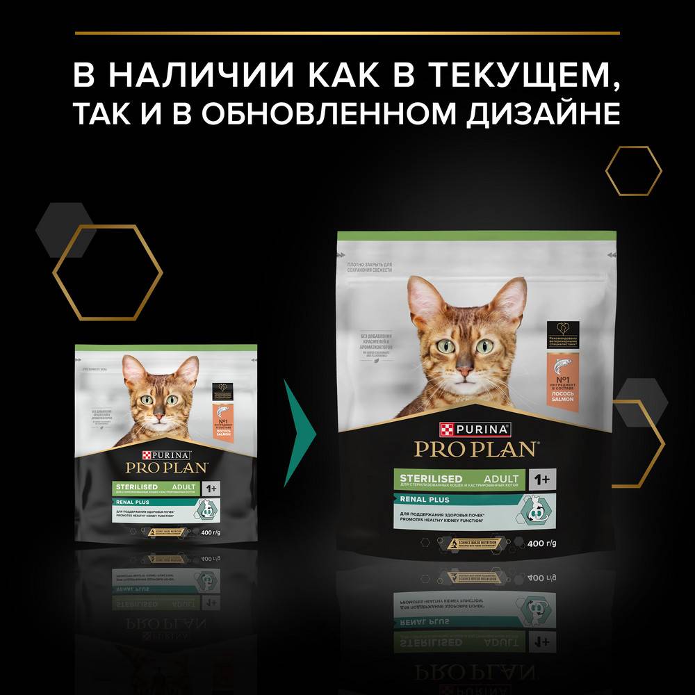 Корм сухой для кошек PRO PLAN® Sterilised RENAL PLUS (Поддержание здоровья почек) — это полюбившийся PRO PLAN® Sterilised OptiRenal с новым названием, но с прежним составом и качеством.