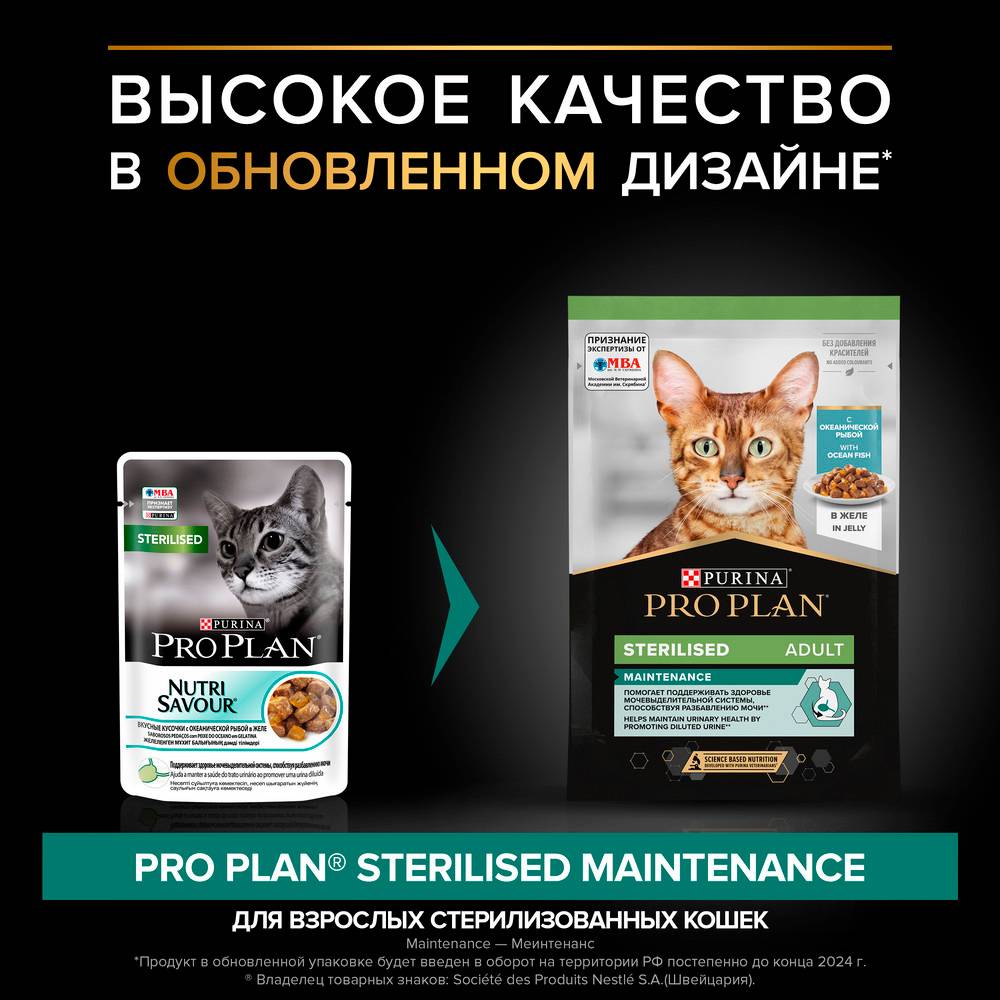 Влажный корм для кошек PRO PLAN® Sterilised MAINTENANCE (Поддержание естественной защиты организма) — это полюбившийся PRO PLAN® NUTRISAVOUR® STERILISED с новым названием, но с прежним составом и качеством