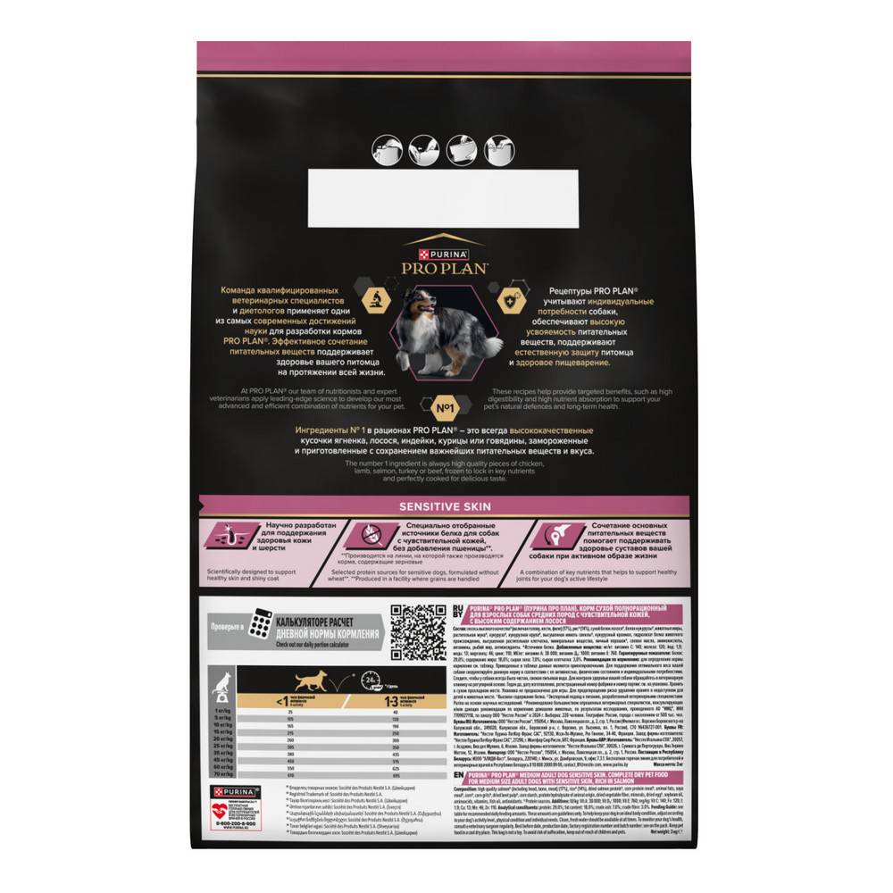 Изучая потребности собак на протяжении многих лет, команда квалифицированных ветеринарных специалистов и диетологов PURINA разработала сухой корм PRO PLAN® Sensitive skin (для чувствительной кожи) — ежедневный рацион с высоким содержанием лосося для взрослых собак средних пород. Этот полнорационный корм сбалансирован по составу и помогает поддерживать здоровье чувствительной кожи.