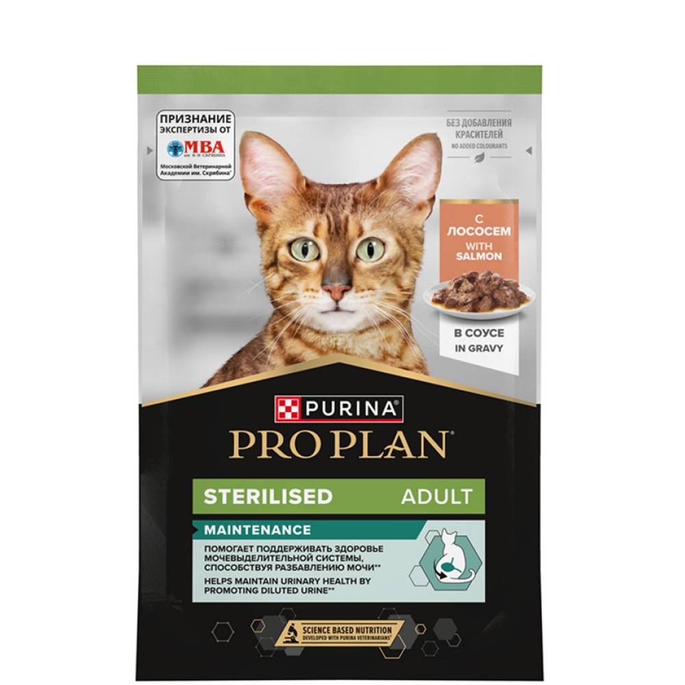 Команда квалифицированных ветеринарных специалистов разработала влажный корм для стерилизованных кошек PRO PLAN® Sterilised MAINTENANCE с лососем. Этот полнорационный корм для кошек разработан с учетом их потребностей в высококачественном белке, а также витаминах и минералах, необходимых для нормального функционирования организма.