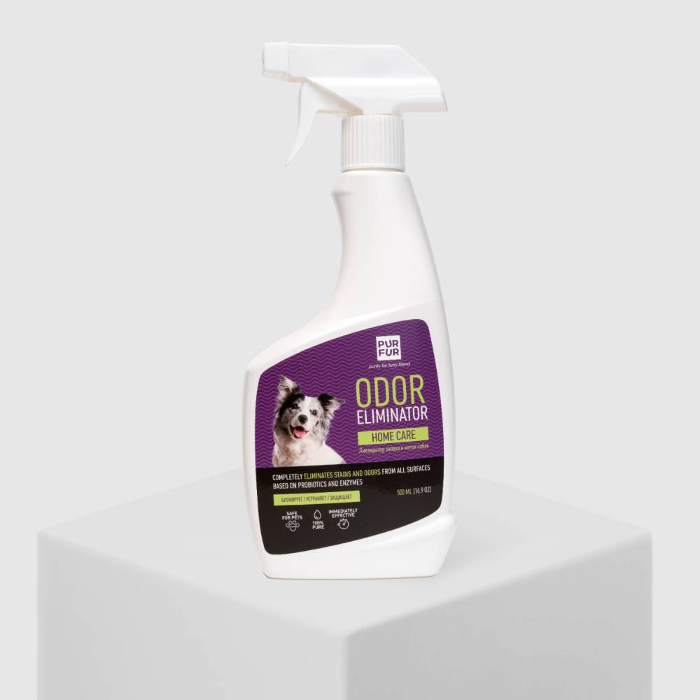 - Помыть загрязненную поверхность и удалить крупные фрагменты, источающие неприятный запах, затем обильно обработать ликвидатором Pur Fur.