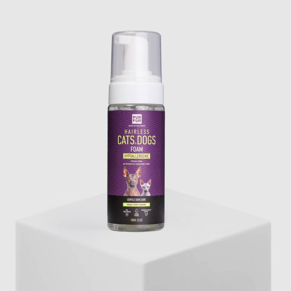 Шампунь для бесшерстных кошек и собак от бренда Pur Fur разработан с учетом особенностей кожного покрова таких питомцев. Сбалансированный pH и входящие в состав компоненты бережно очищают и увлажняют кожу домашнего любимца. С шампунем-пенкой Pur Fur гигиенический уход будет простым и эффективным.