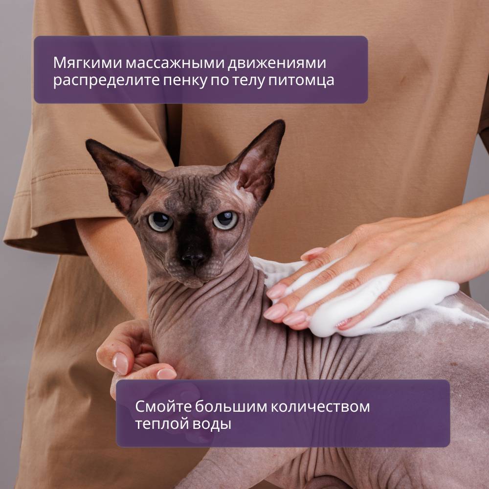 встряхните флакон с шампунем и выдавите небольшое количество пенки на ладонь или губку. Мягкими массажными движениями распределите пенку по телу питомца, затем смойте большим количеством теплой воды. После процедуры высушите собаку или кошку с помощью полотенца.