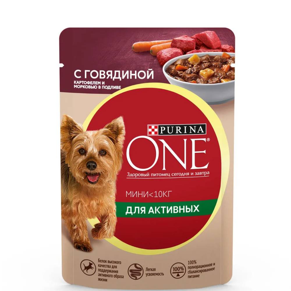 - Влажный корм для собак Purina One сочетает в себе мягкие кусочки и овощи с аппетитной подливой, что увеличивает его вкусовую привлекательность.