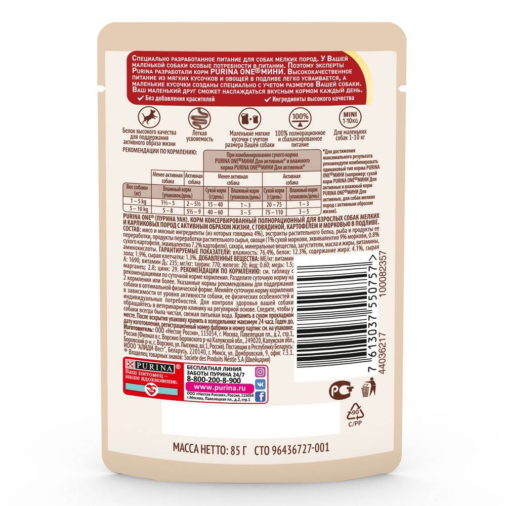 - Влажный корм для собак Purina One является полнорационным и содержит необходимые для здоровья микронутриенты.