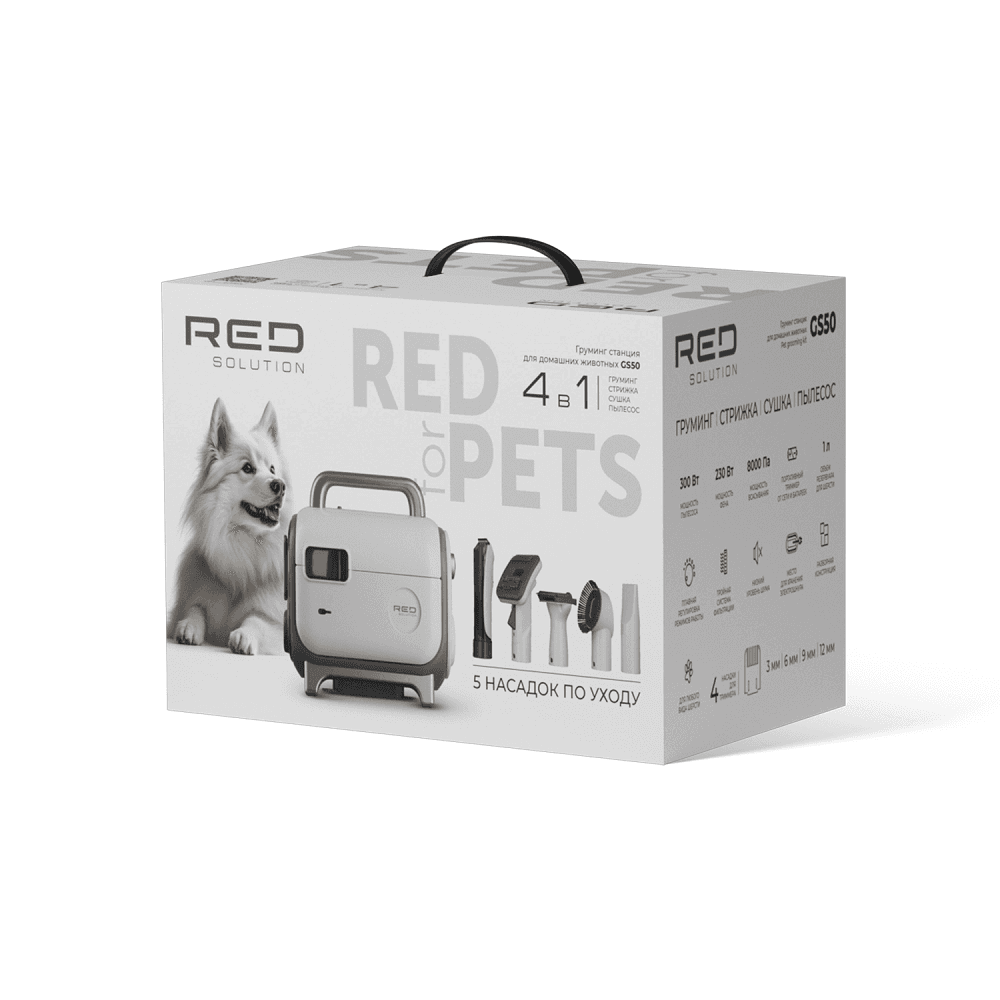 Груминг-станция RED SOLUTION GS50 — это профессиональный уход за шерстью домашних животных в одном устройстве. Сочетая функции пылесоса, фена и триммера, GS50 обеспечивает бережное вычесывание, подстригание и сушку шерсти без стресса для питомца. Мощный и тихий двигатель на 530 Вт, система фильтрации HEPA и 5 насадок делают уход быстрым, эффективным и безопасным. Идеально подходит для собак и кошек всех пород.