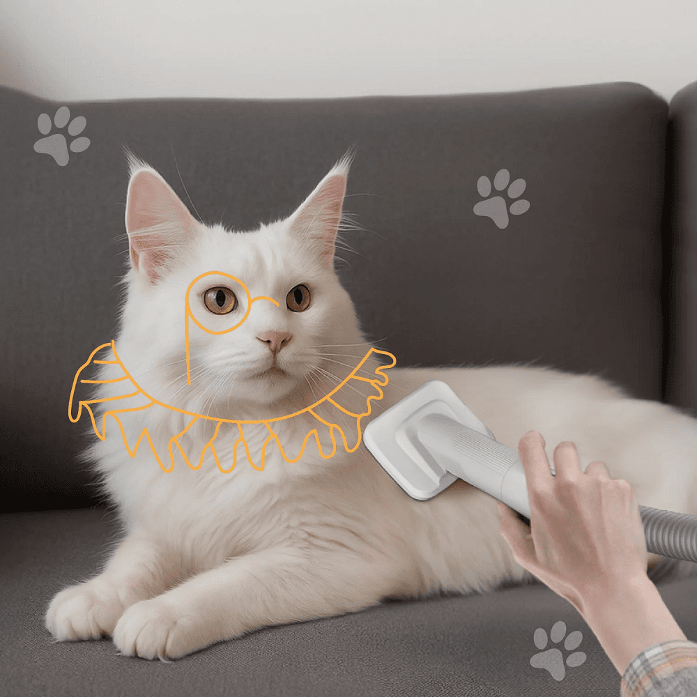 - Мощный всасывающий режим. С силой всасывания 8 кПа и объемным контейнером на 1 литр станция эффективно собирает шерсть во время расчесывания, предотвращая ее распространение по дому.